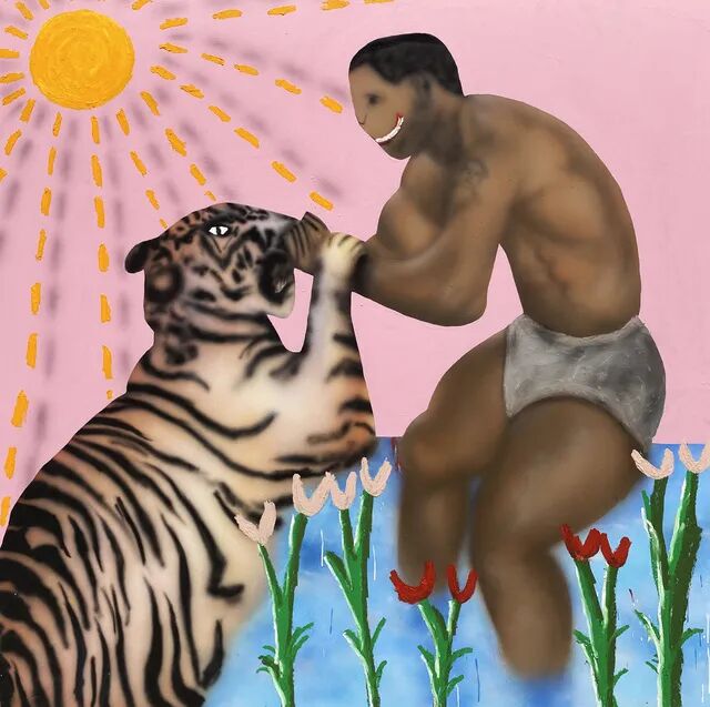 Real Tiger king / acrylics, spray paint and oil stick / 170×150 cm canvas / 2020