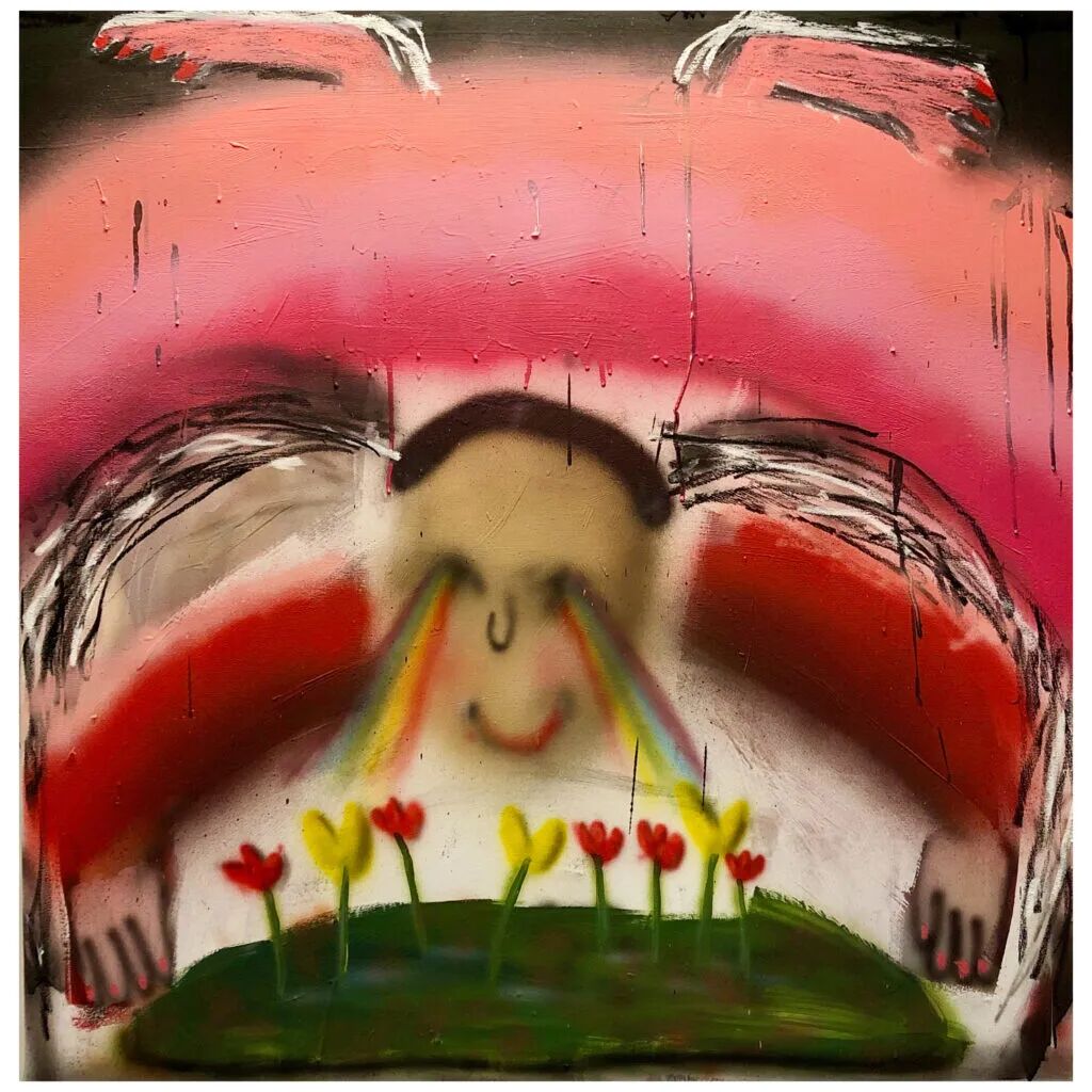 Do not let the tears fool ya / acrylics, spray paint and oil stick / 200×150 cm canvas / 2020