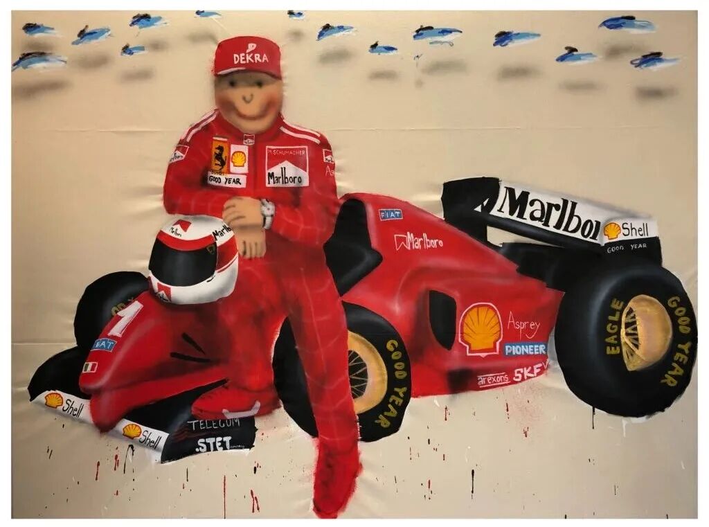 Mr. Schumy and his F1 / acrylic and oi pastels / 155×115 cm canvas / 2020