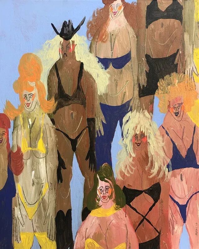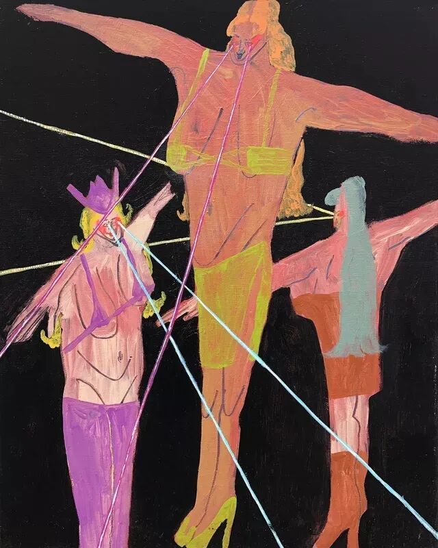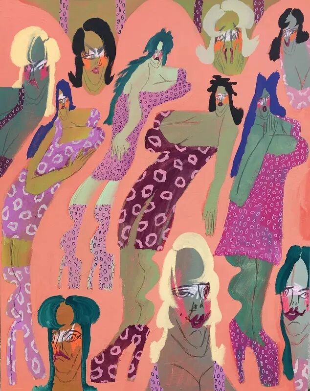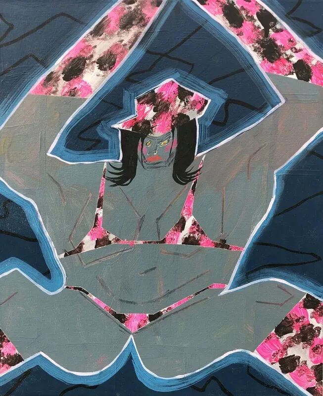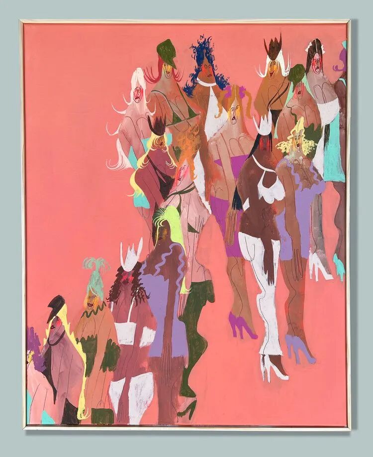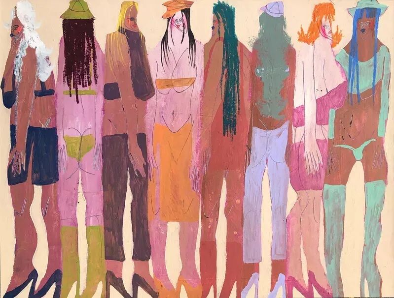 Acrylic , oil pastels, and temporary tattoos on canvas
