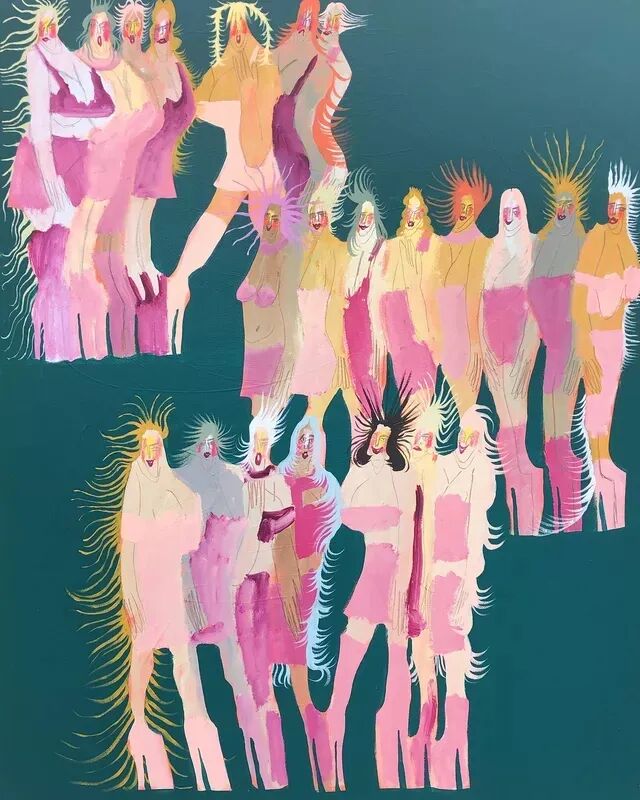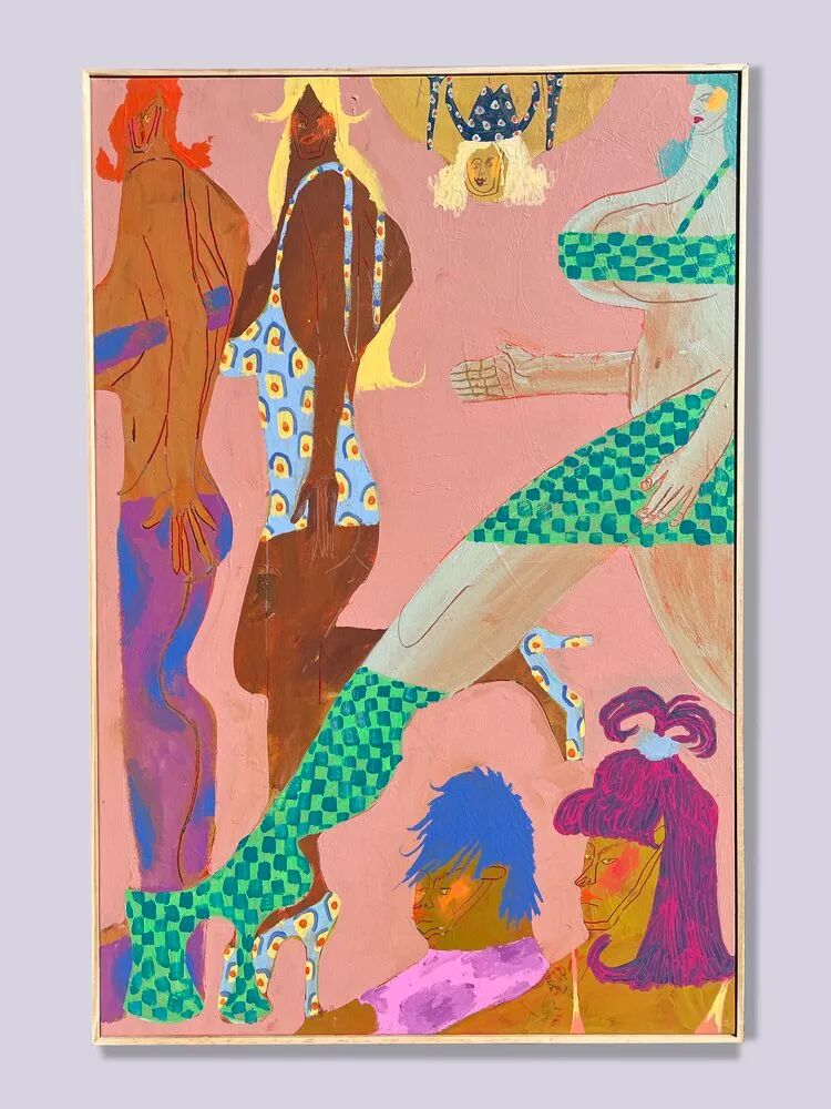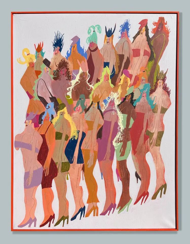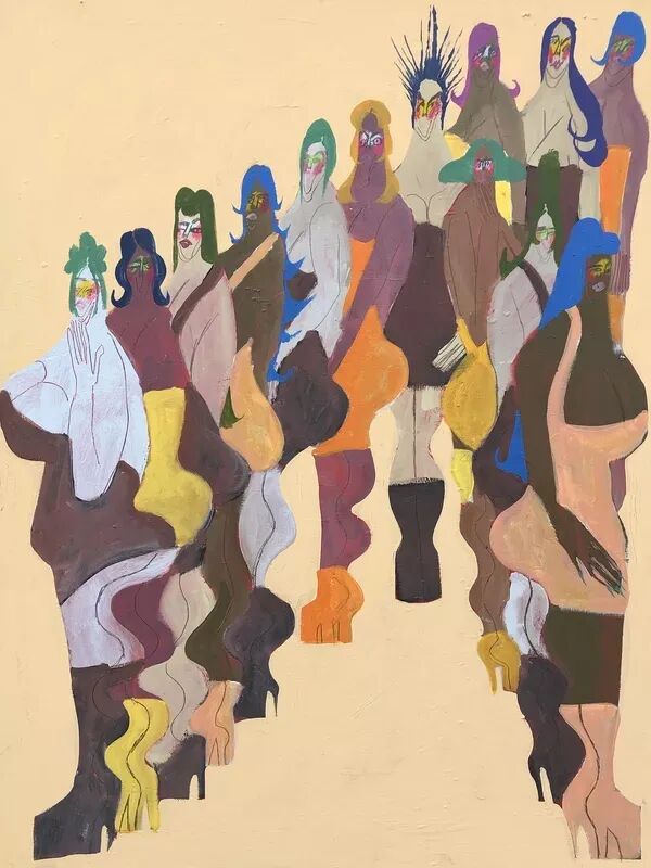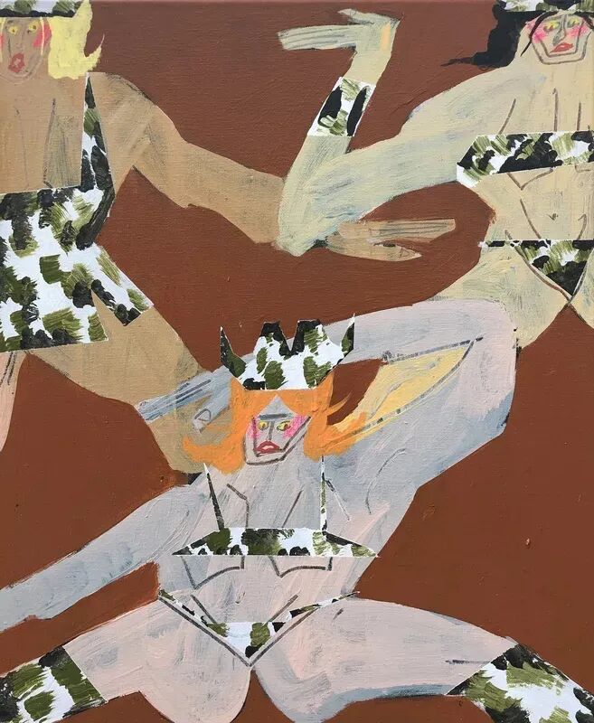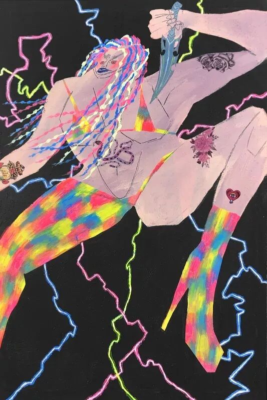Acrylic, Oil Pastel, temporary tattoos on Canvas