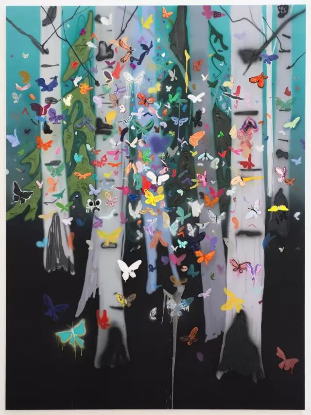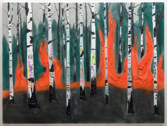 Oil, acrylic and spraypaint on aluminum,121.9 × 91.4 cm