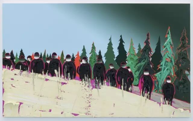 Oil, enamel and acrylic on canvas,182.9 × 304.8 cm