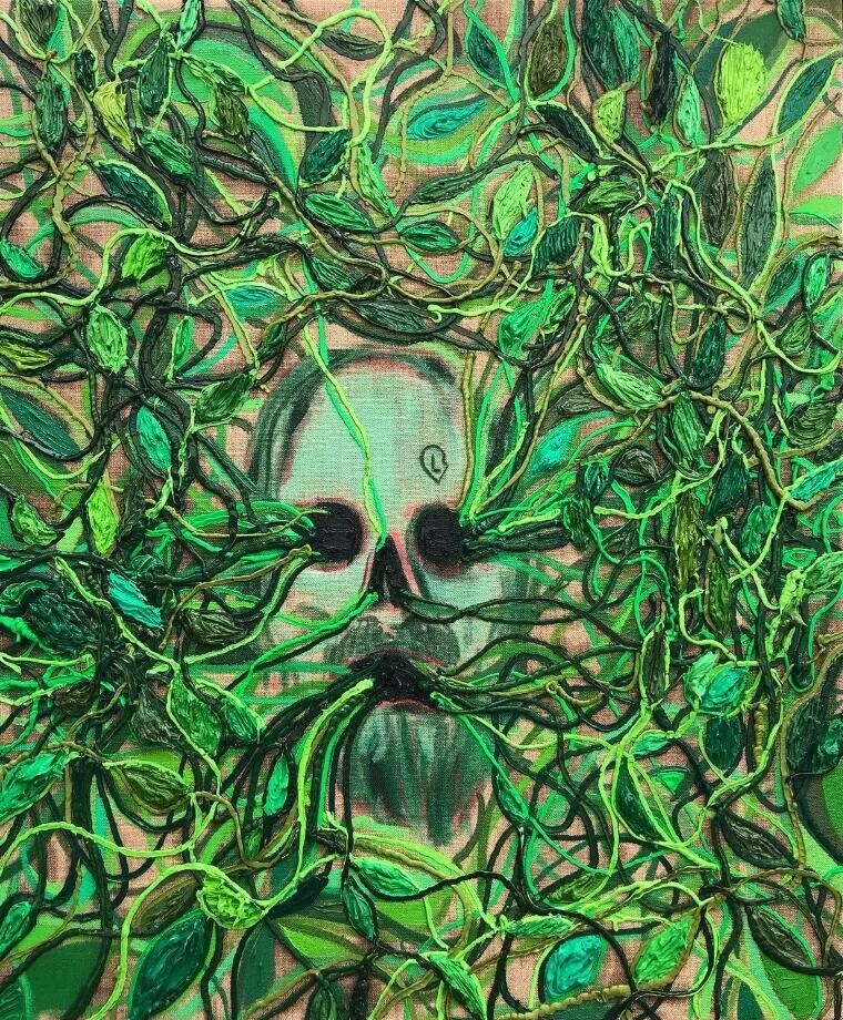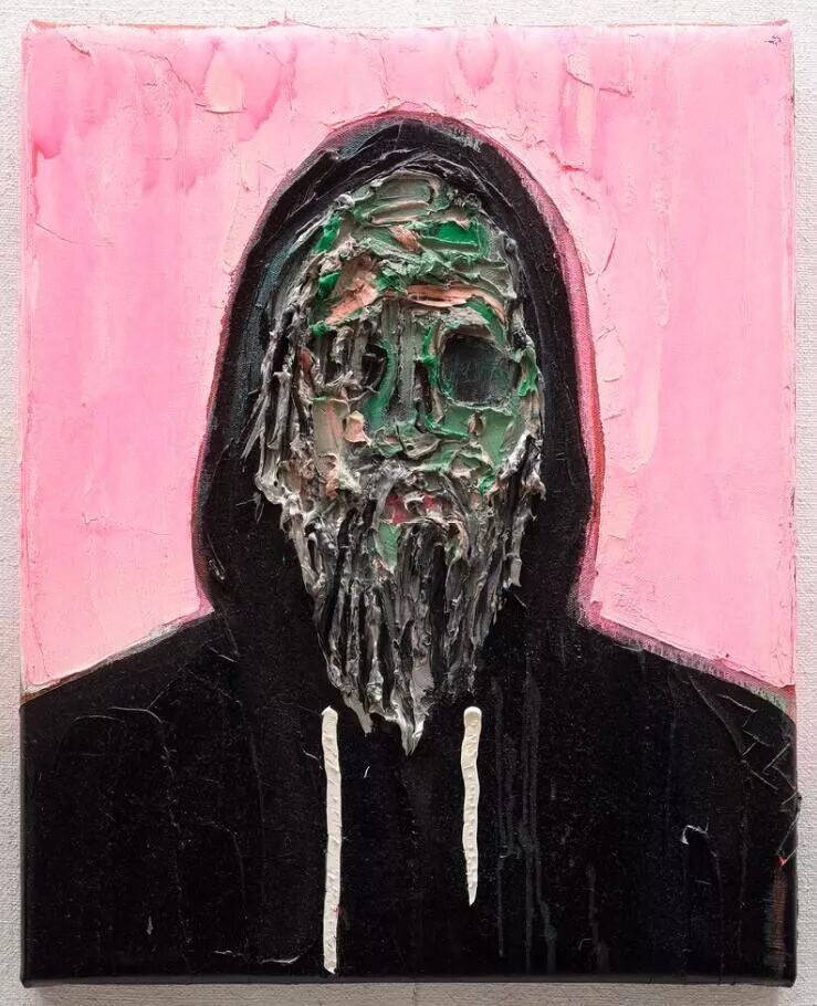 Oil, acrylic and ink on canvas,76.2 × 61 cm