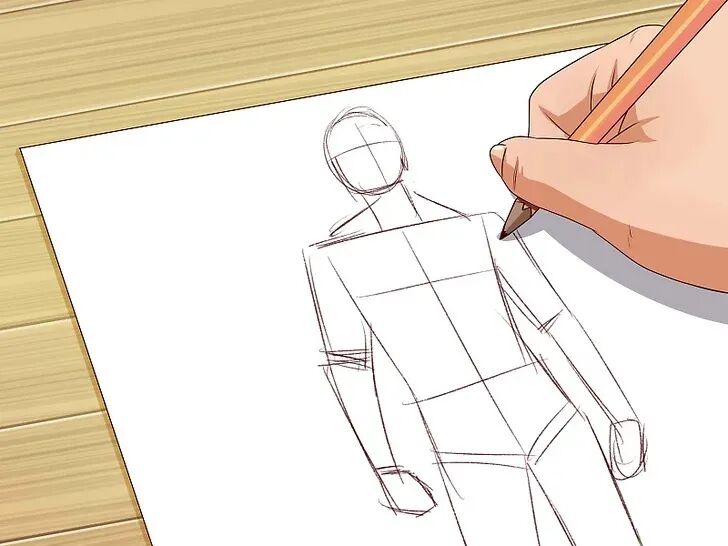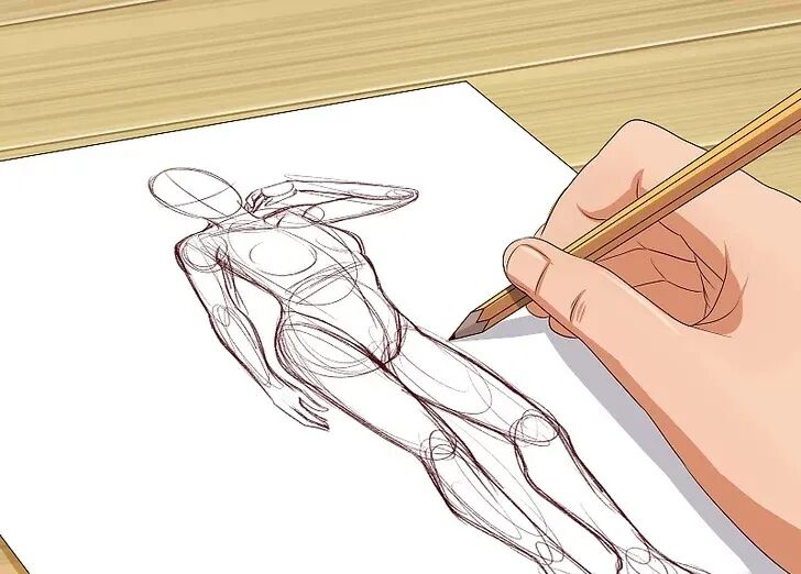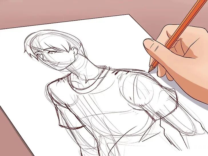 首先是画出辅助线和简笔画,然后加入基本的形状和姿势,之后再在轮廓上添加永久性的线条,连接关节,添加面部特征等等。想像一下通过连接关节来做出的身体最终轮廓,这样你就有了一个大概的形状。