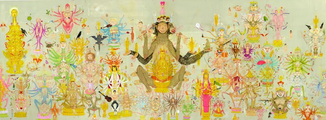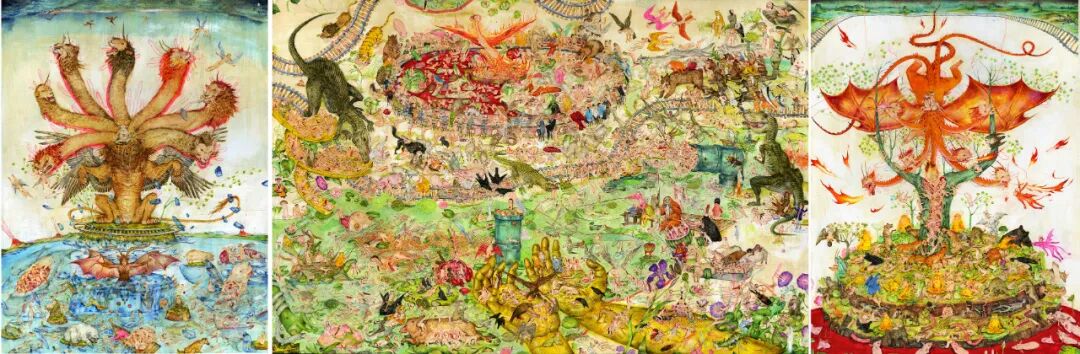 Mu Pan’s Garden Of Earthly Delight. 36″ x 48, each side. 48″ x 72″, center. 2018-2019