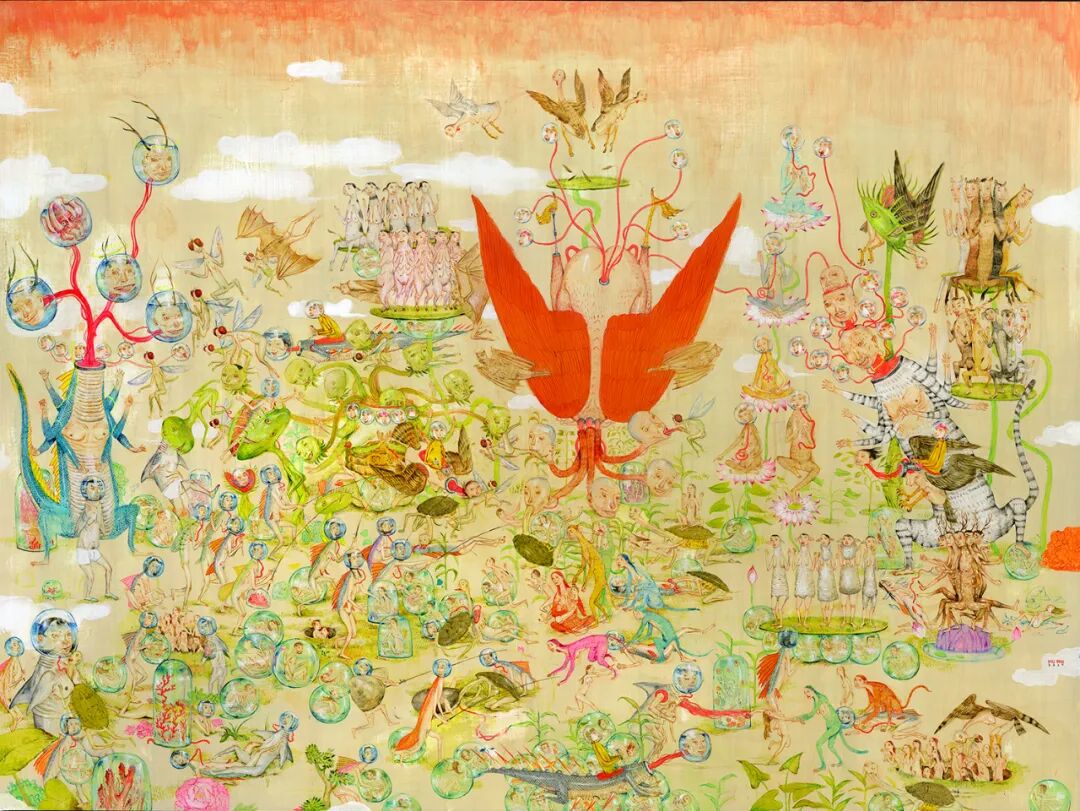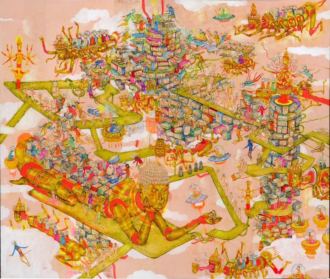 The Land Of Extreme Happiness in The West. 2019 Acrylic on wood. 50″ x 60″