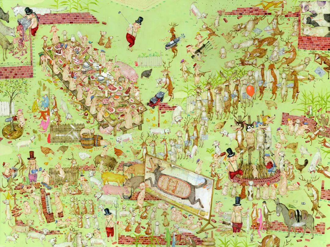 Many Little Pigs. Acrylic on wood. 36″ x 48″ 2020