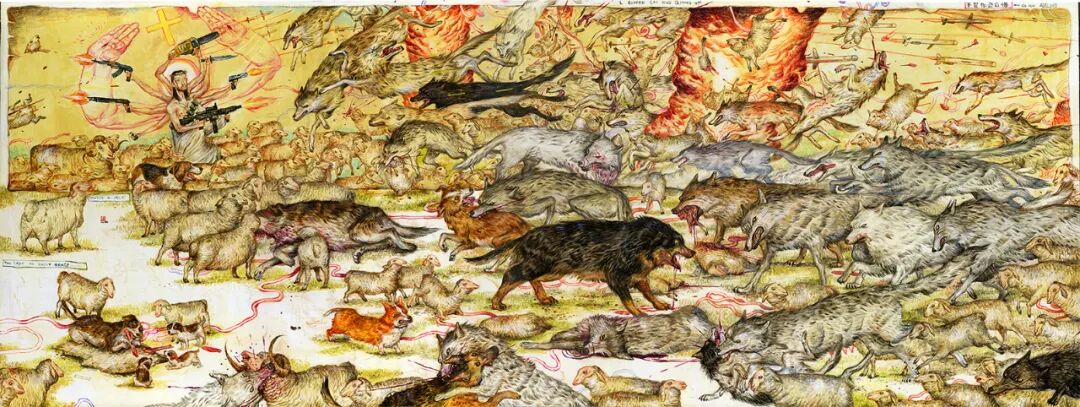 Mu Pan’s 5Dinoasshole Chapter 3. . Acrylic on wood. 36″ x 48″.2016