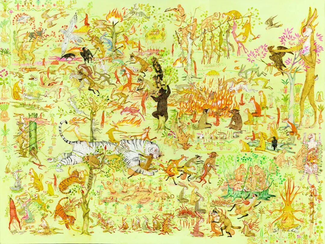 Rabbits 36″ x 48″ acrylic on wood . 2020