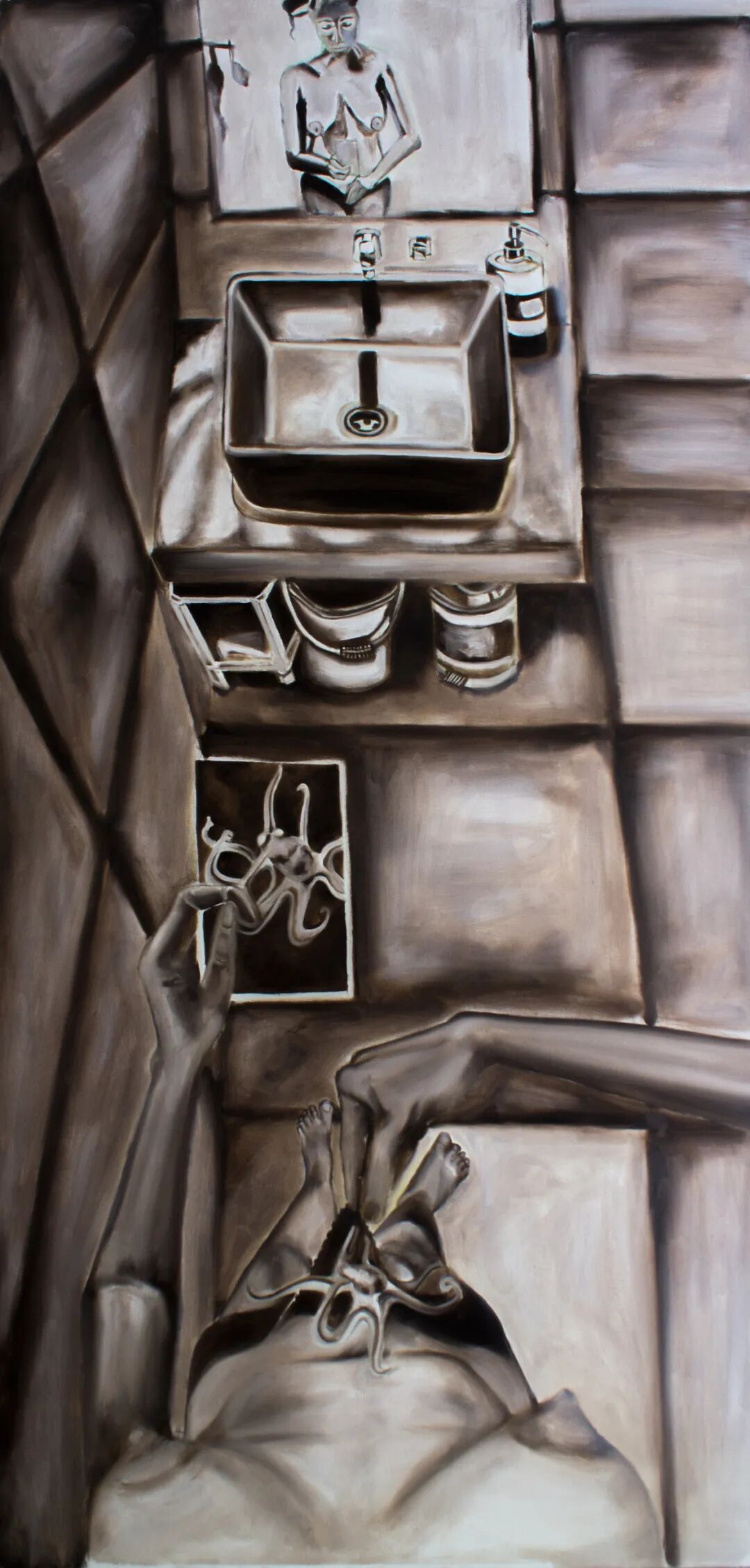 anatomy of a phantom dick,98 x 36 inches,Oil on canvas