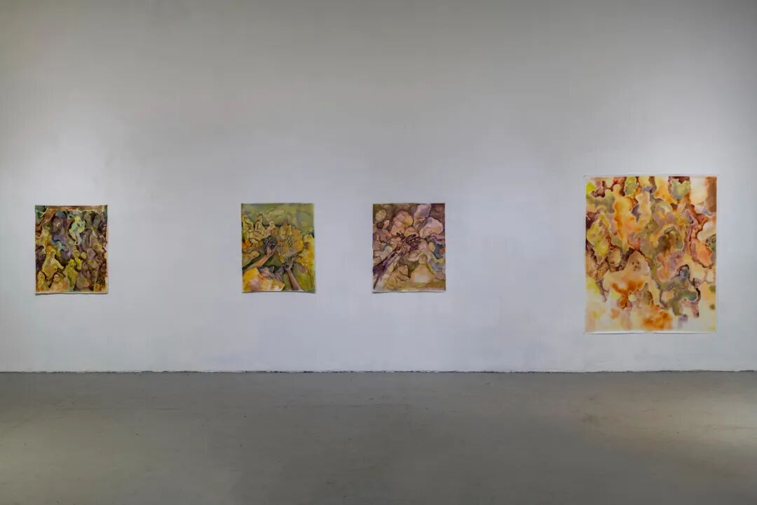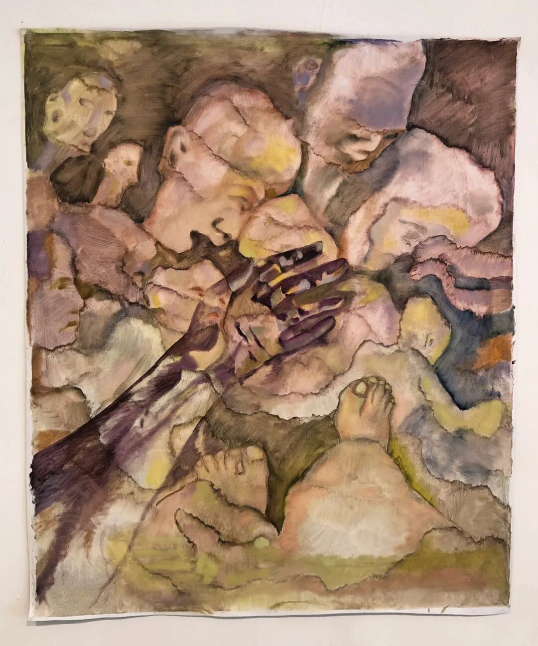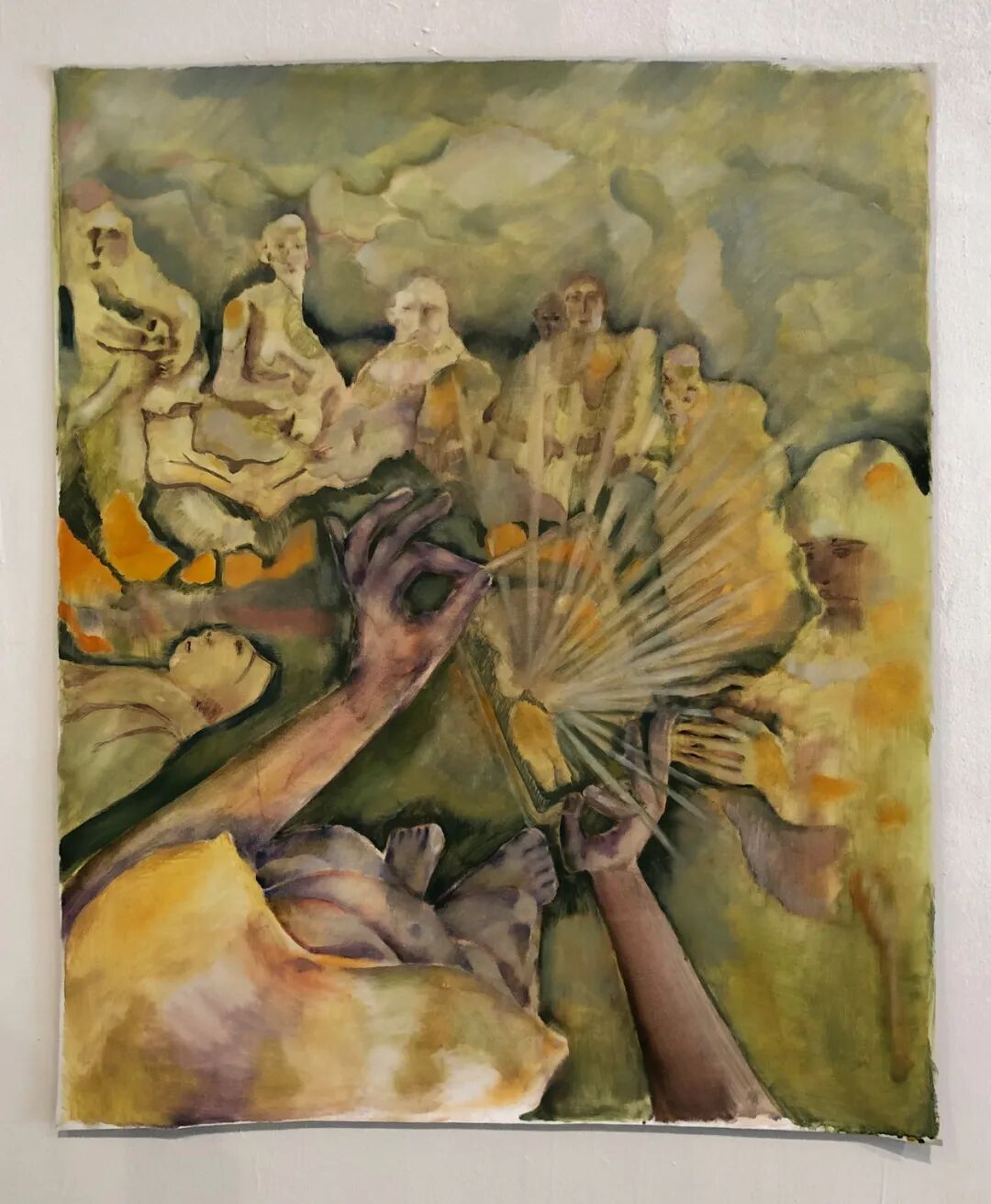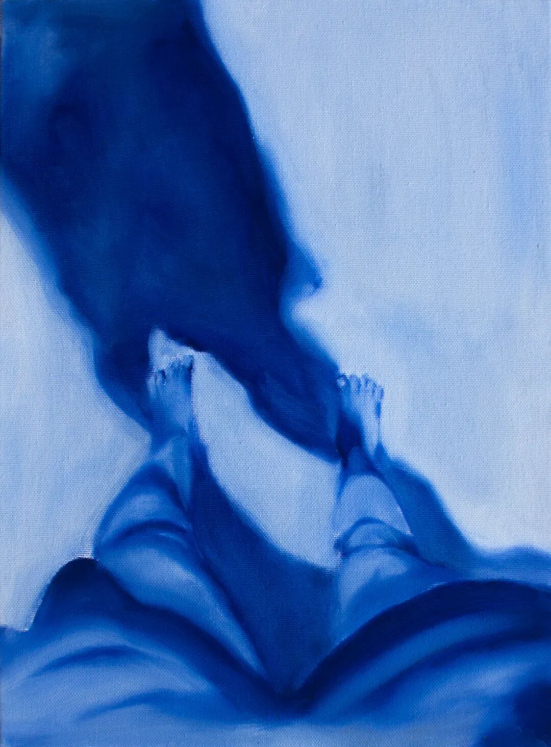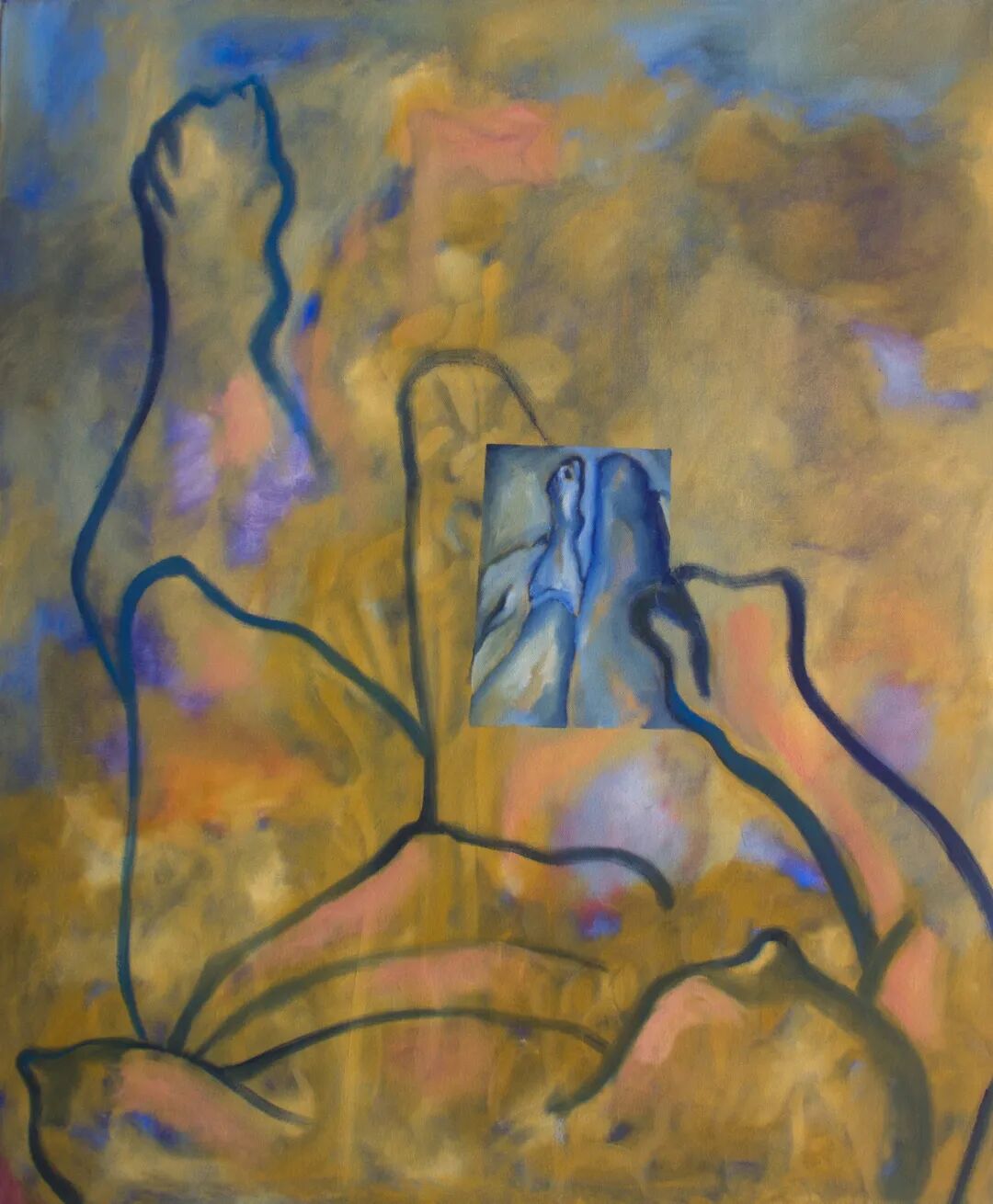 making liquid memory, oil on hand-cut linen, 36 x 30 inches, 2022