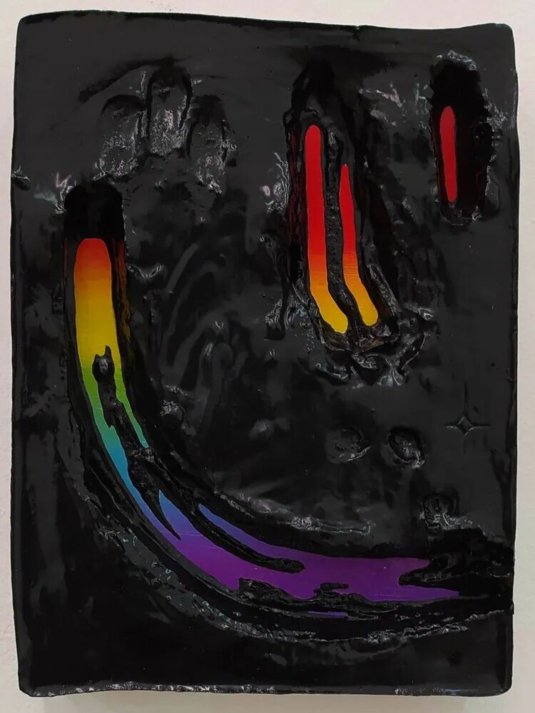 self-portrait at the end of the lake, 2019, lacquer and plaster on wood, 25cm x 18.5cm x 5cm