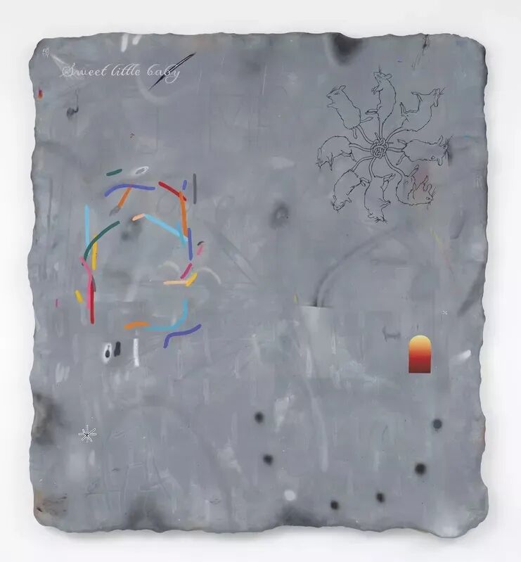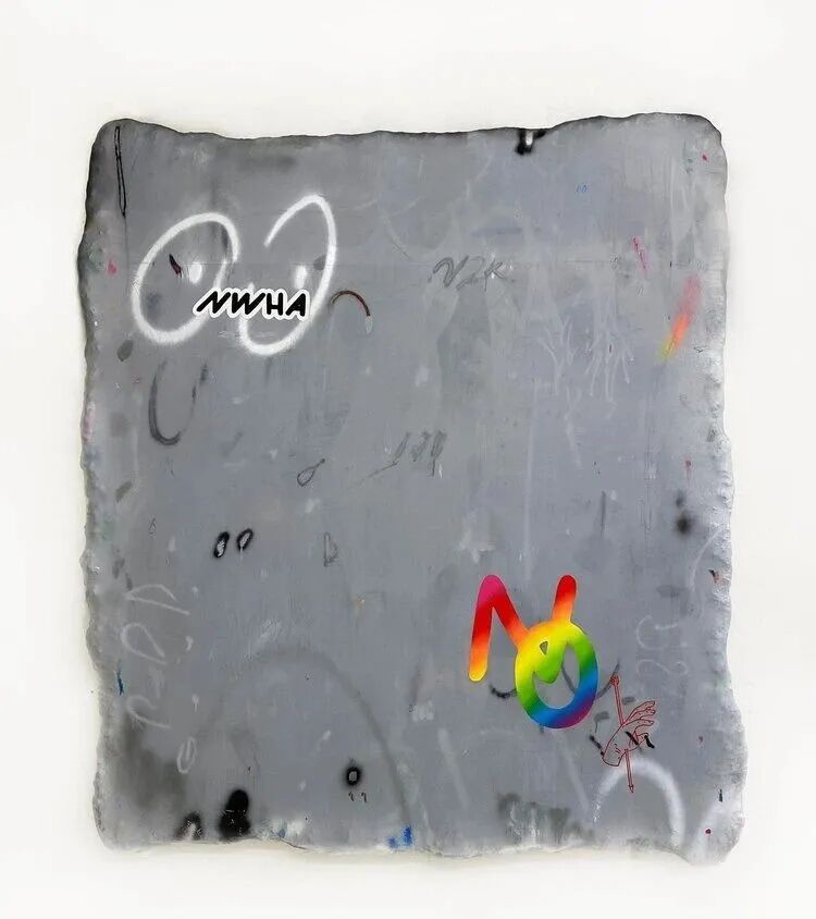 ngl, 2020, mixed media on canvas, 110 x 136 x 6 cm