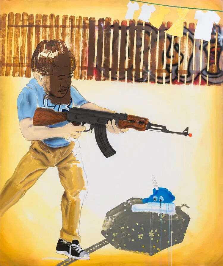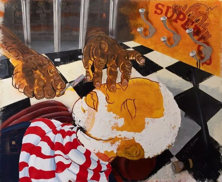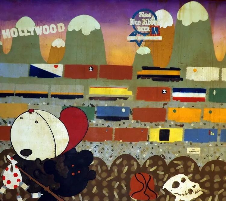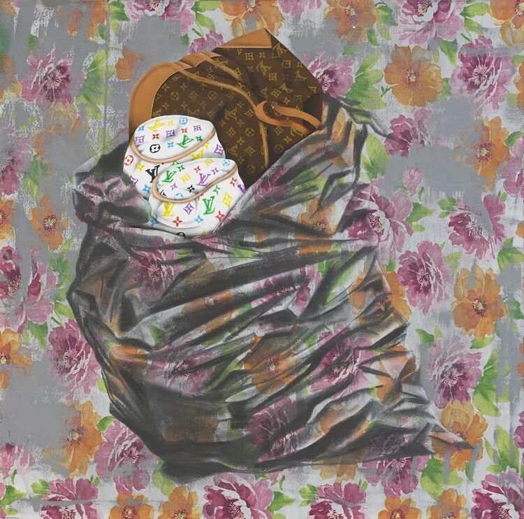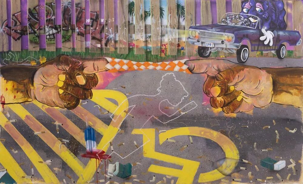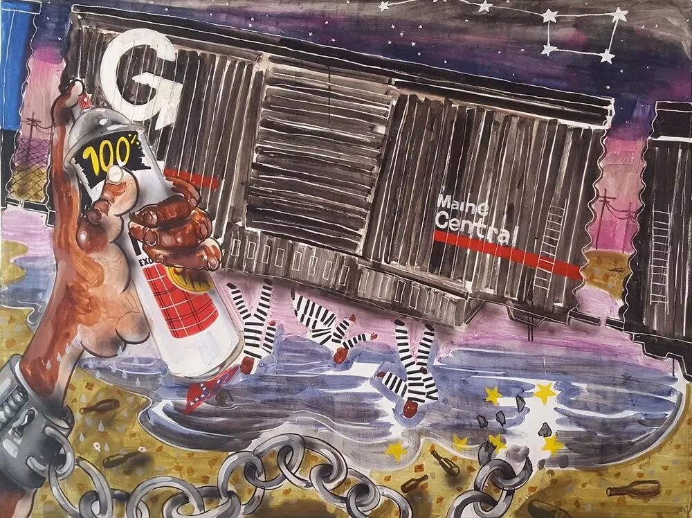 Acrylic, paint marker, airbrush, aerosol paint on canvas