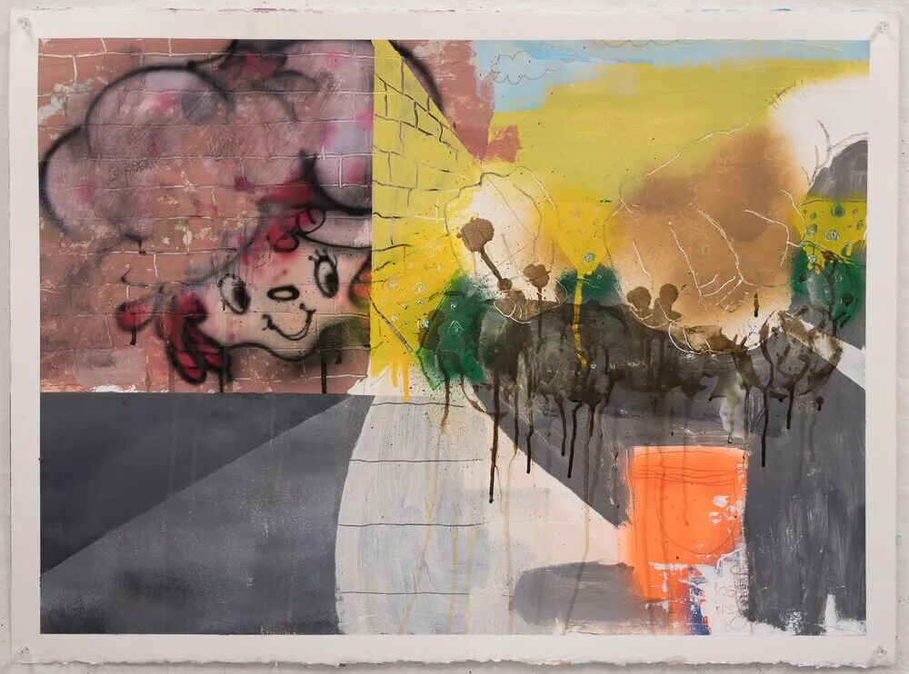 Acrylic, pencil, airbrush, aerosol paint on paper