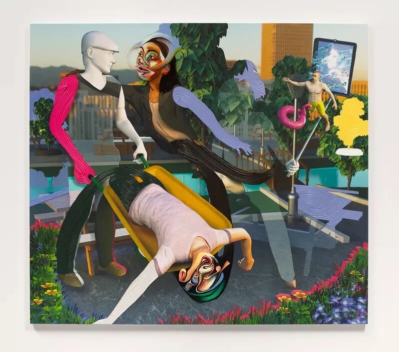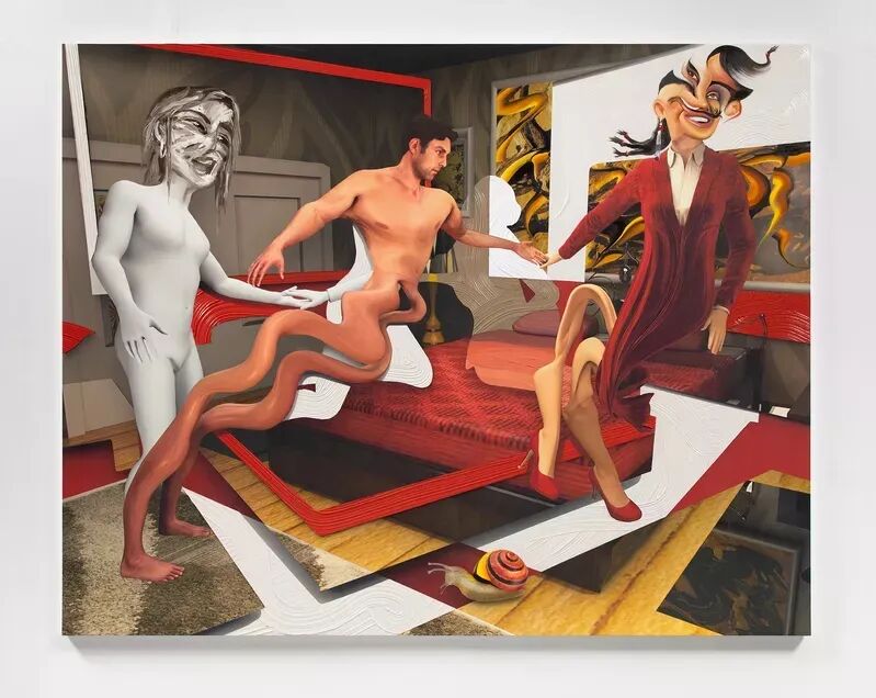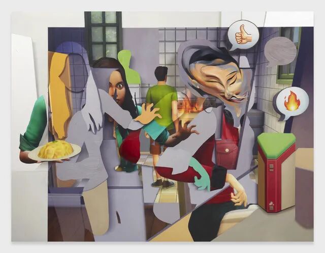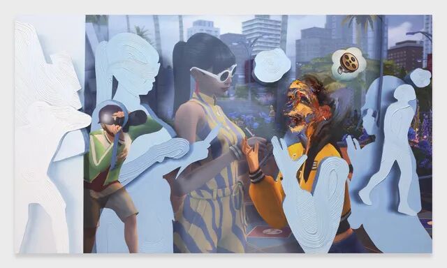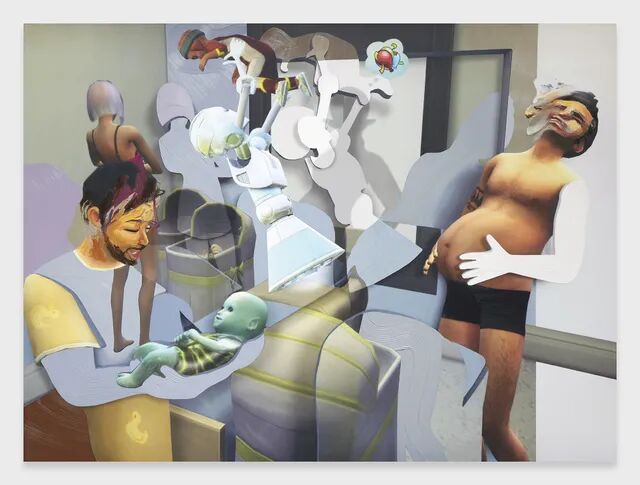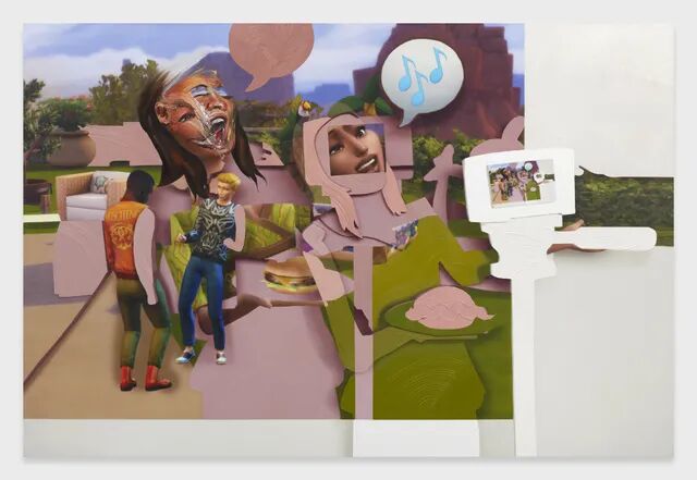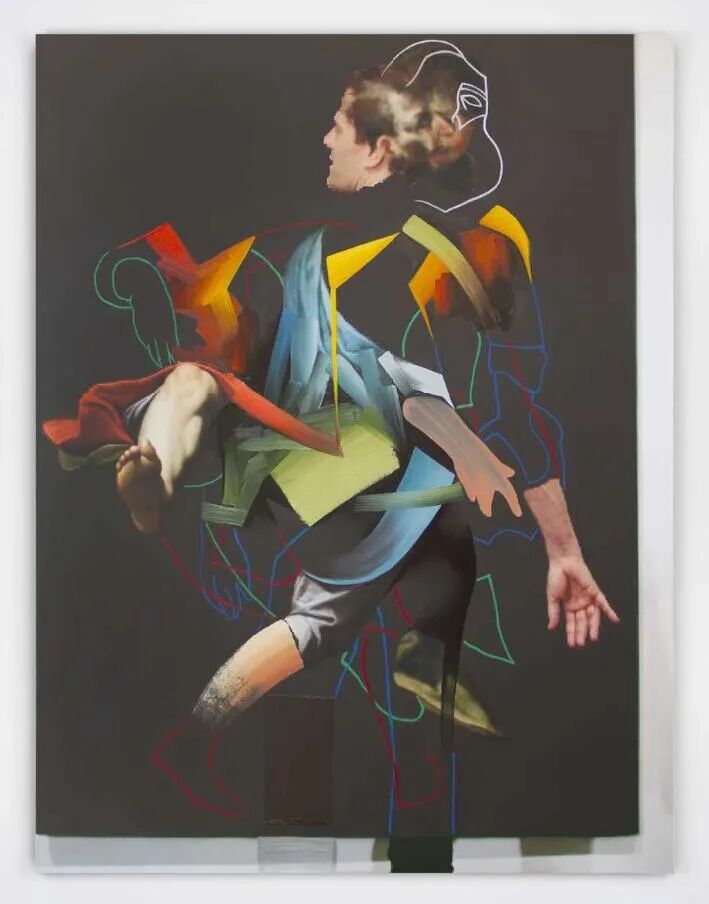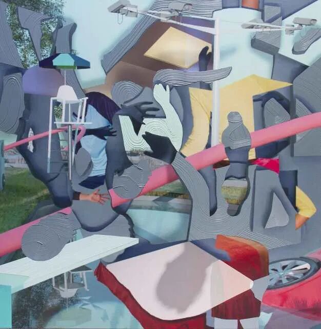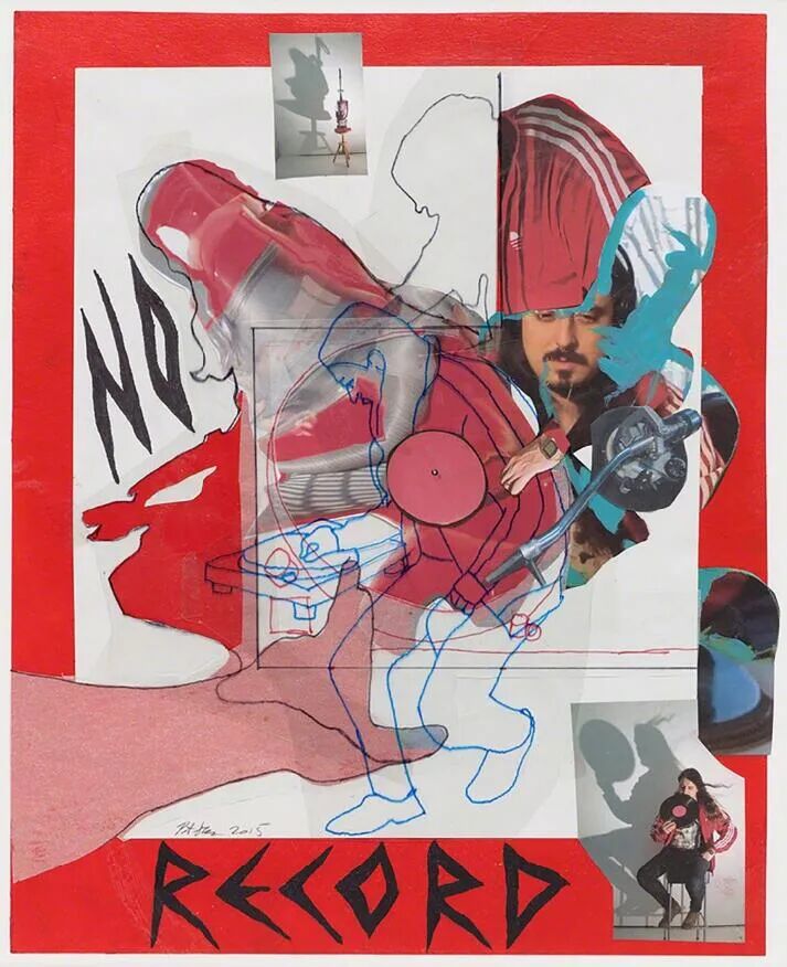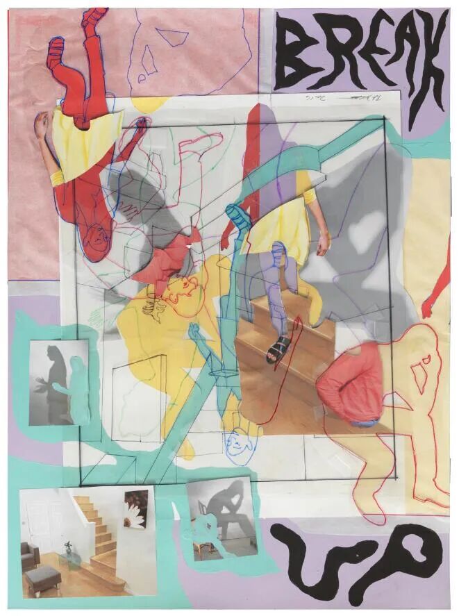Acrylic, pen, cut paper, acetate, pencil, and inkjet print collage