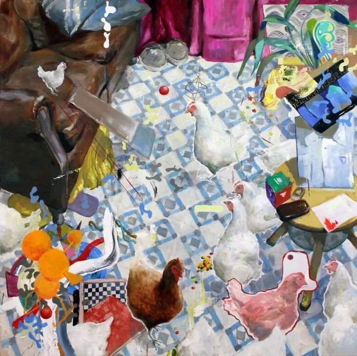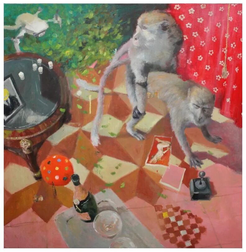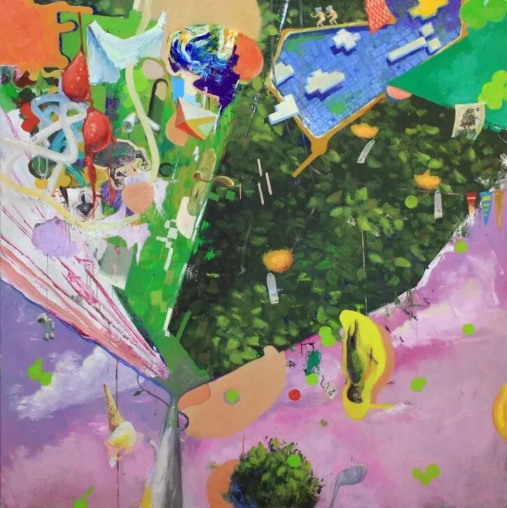 oil,acrylic on paper glued on canvas, 200x200cm, 2018