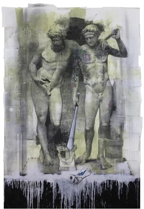 charcoal, acrylic, oil on paper glued on canvas, 250x170cm, 2017