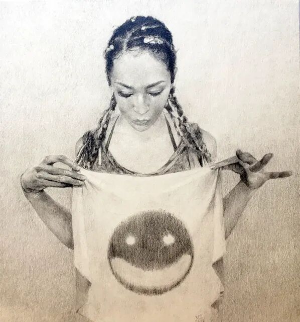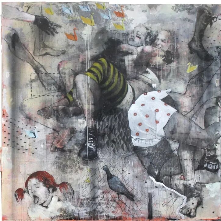 charcoal, acrylic, oil on paper glued on canvas, 200x200cm, 2017