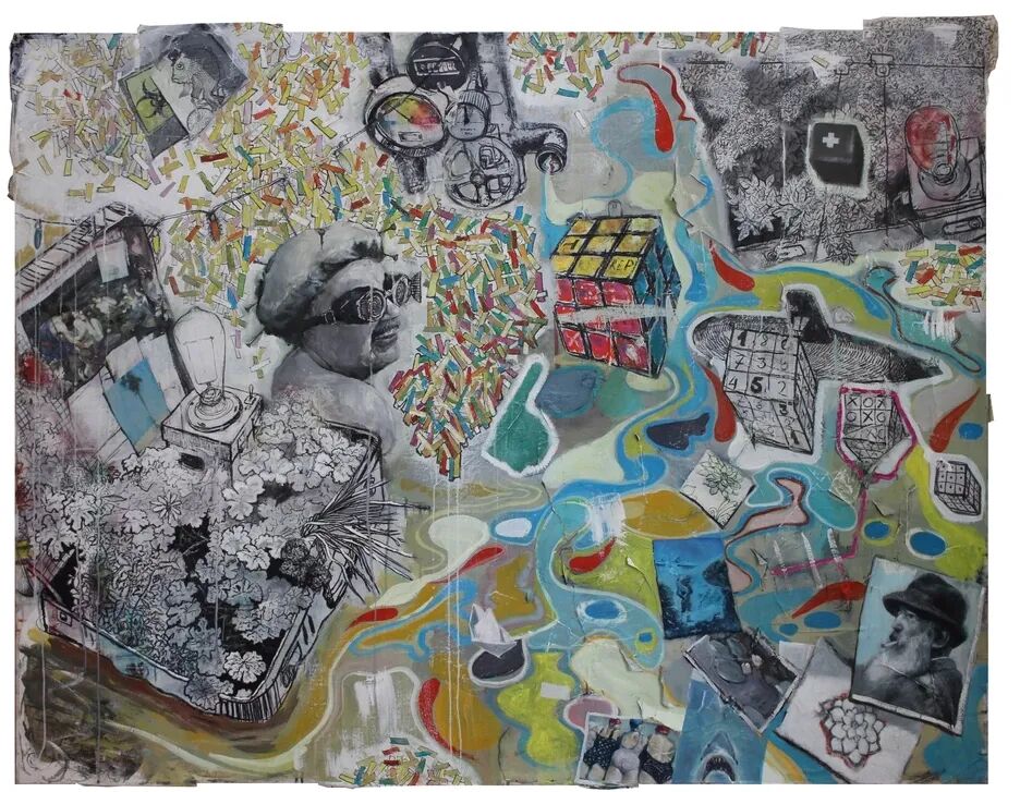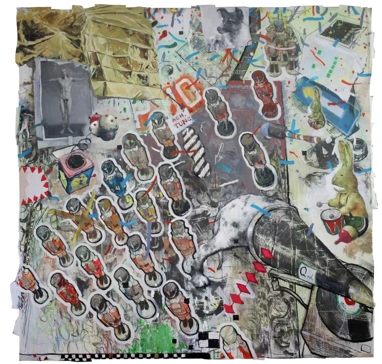 oil,acrylic, charcoal on paper glued on canvas, 140x170cm, 2020