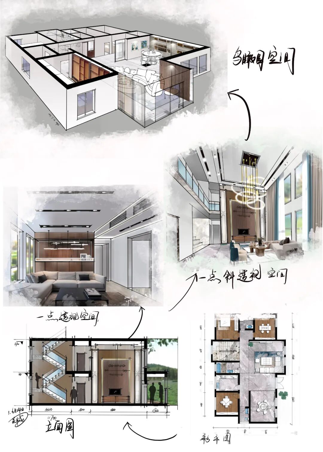 在设计方案时,设计师可以充分利用iPad手绘所带来的辅助优势,快速从平面空间布局设计生成能看到全局的鸟瞰图,最后再到立面图,效果图。