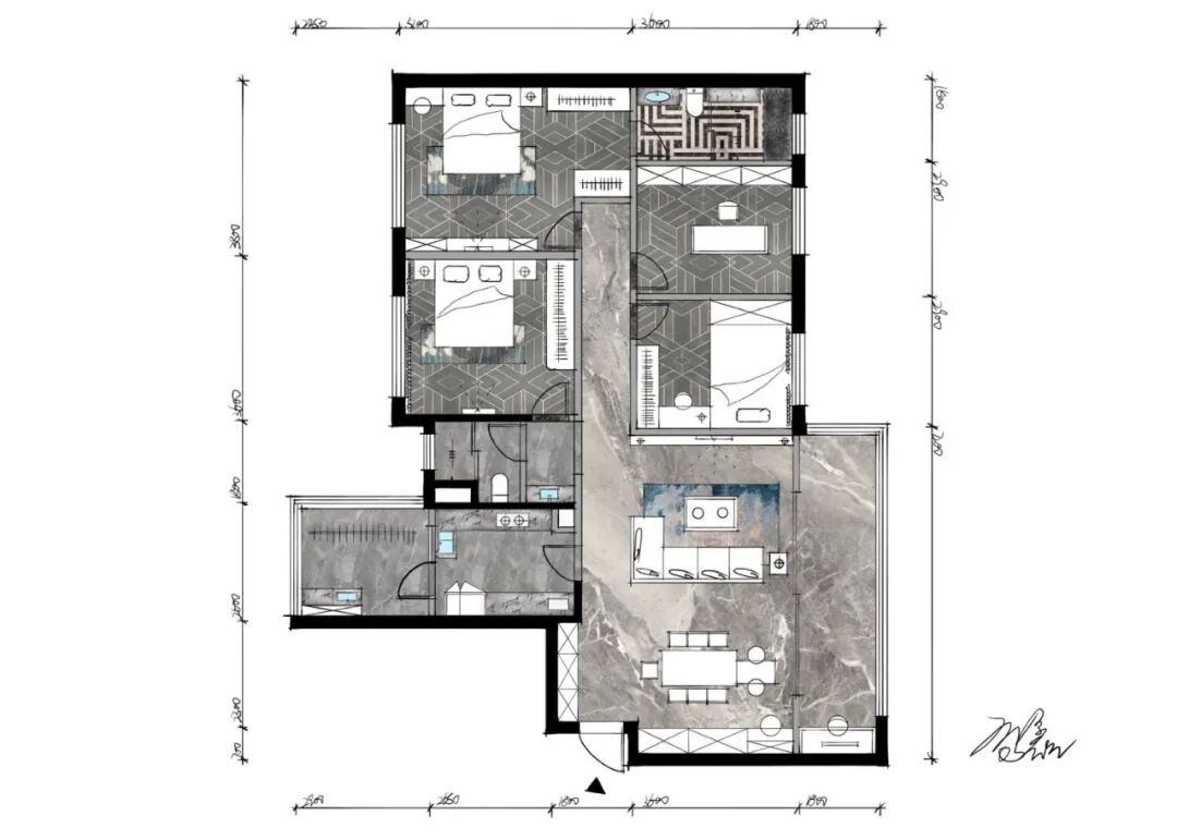 iPad手绘优化了深化设计以及渲染效果图的交流成本,大大提高表达的真实性以及高效性,避免了与客户沟通的失误,节省大部分与深化、效果图的交接成本。