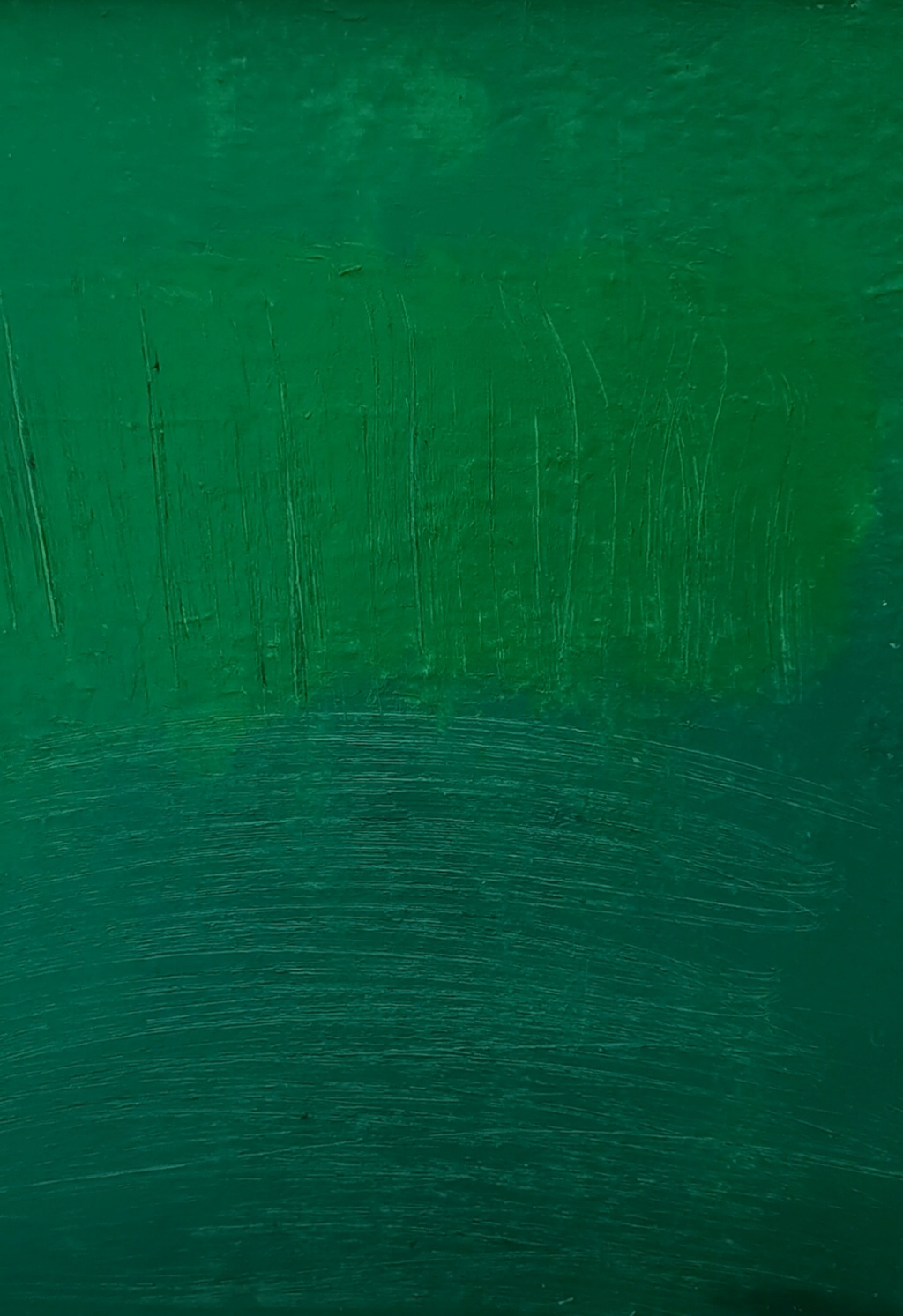 疫情让人更多地看到生命的无常,人类的渺小,而晓鸣作品中无数的绿点集合而成的形式各异的色块、氛围、情感,却在其建构的绿色空间中让我们体验到一份安宁、平静与从容,正如大提琴曲《天鹅》一般,晓鸣的作品也在心灵深处治愈着你我。