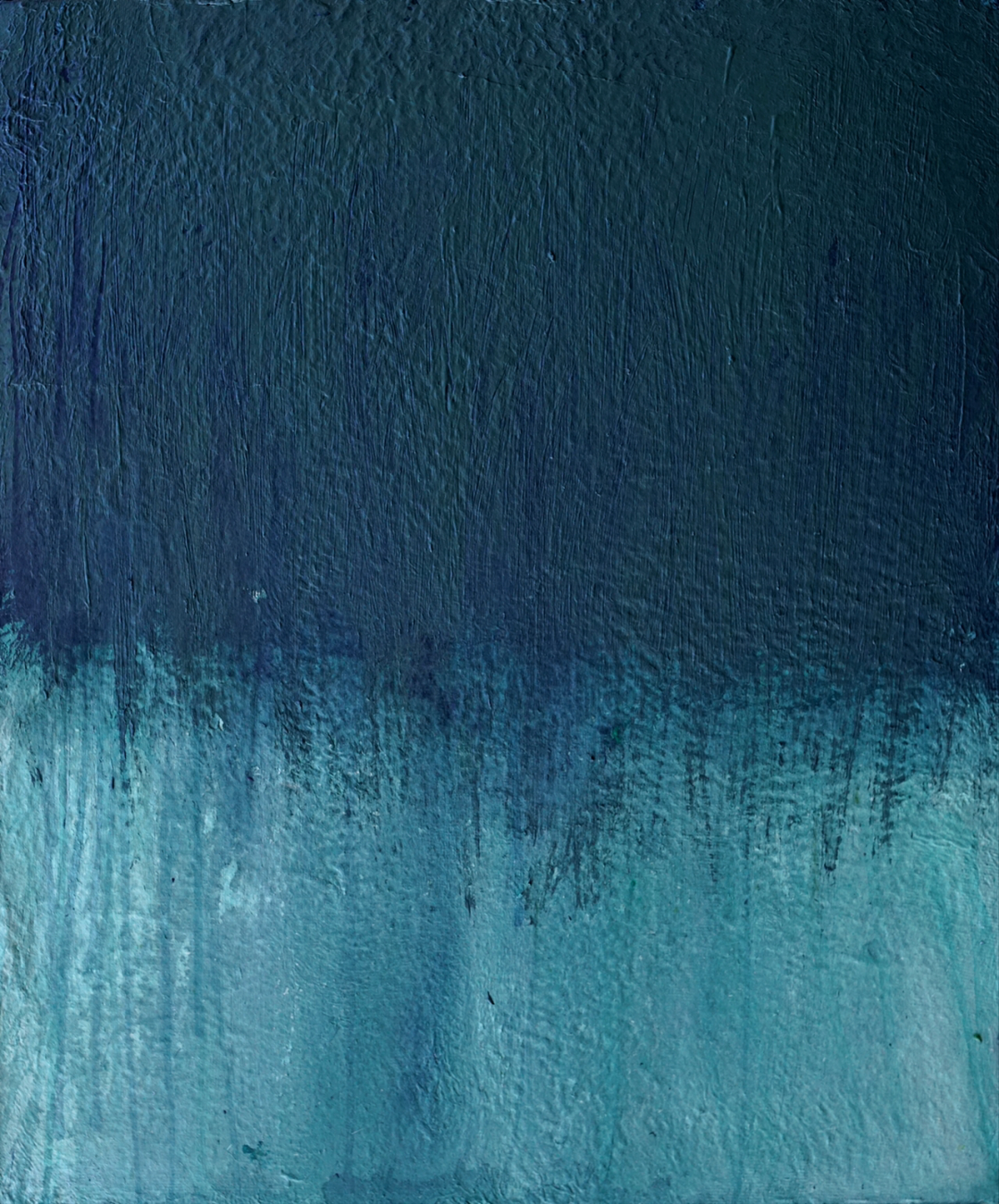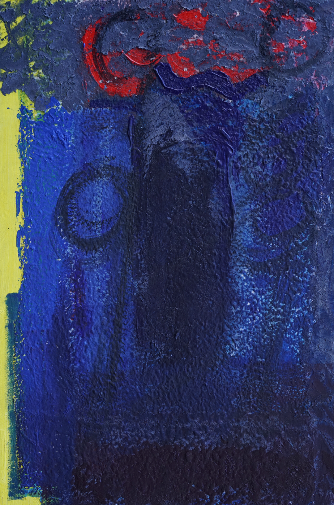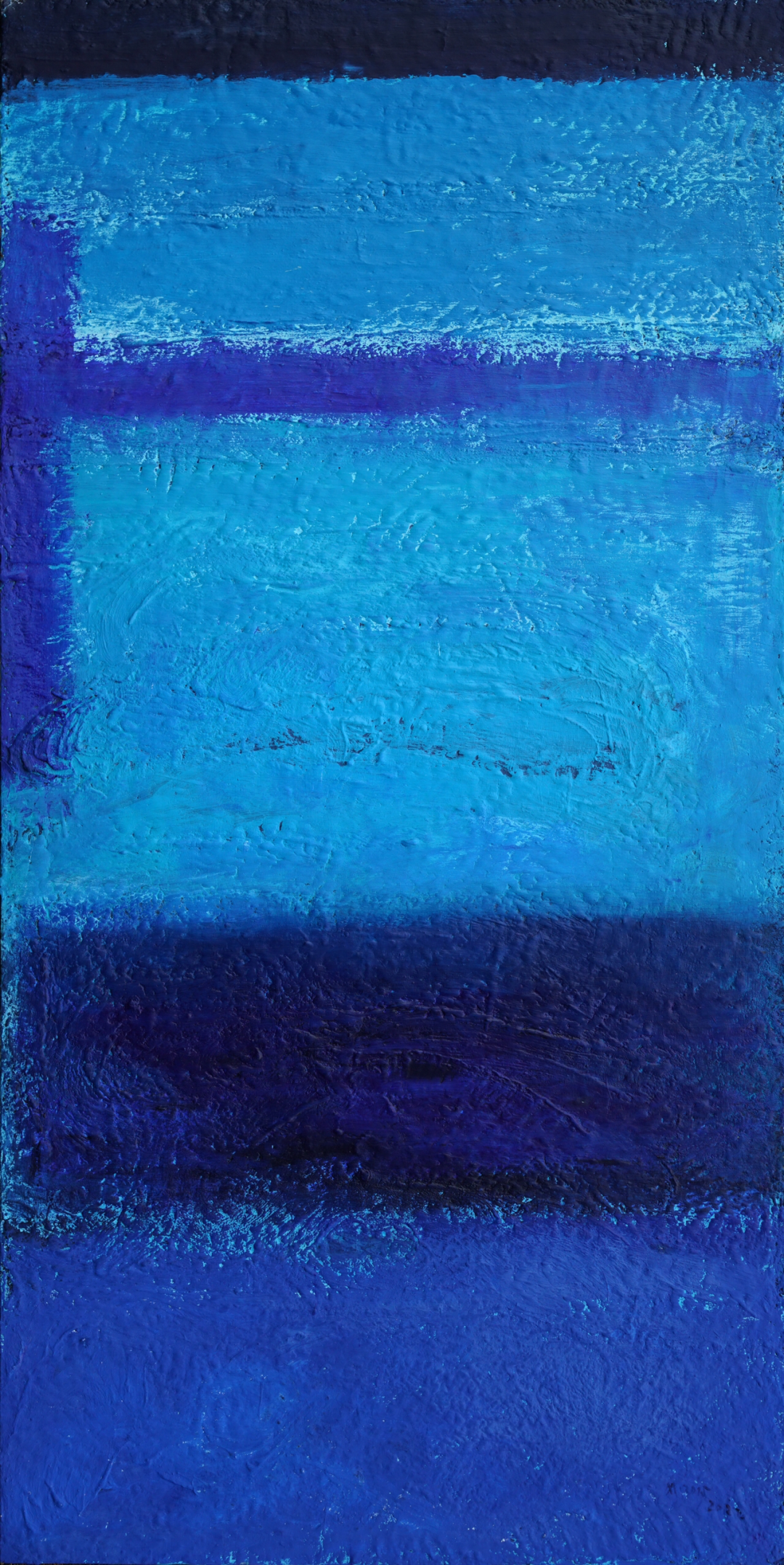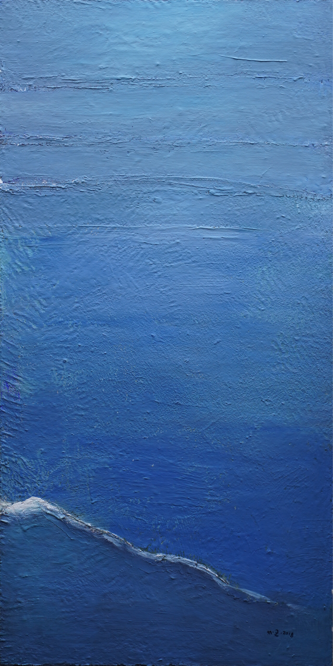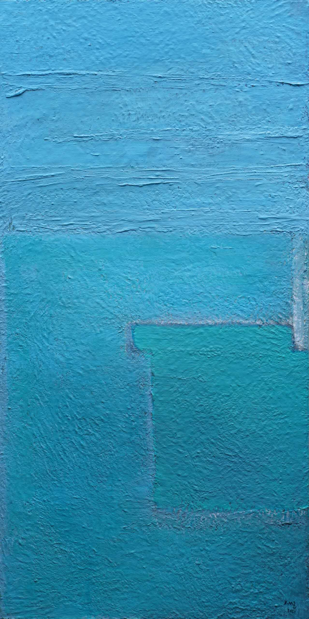 她继续抽象画探索,并且依然是以音乐为主题,但是她的画面发生了很大变化,以前那种有节奏韵律的“有机”的方块符号消失了,代之以更加虚幻无形的“无机”世界。尽管如此,但我觉得她的画更贴近她的内心,贴近人的起伏不定的情感。我非常高兴她的这一转变。