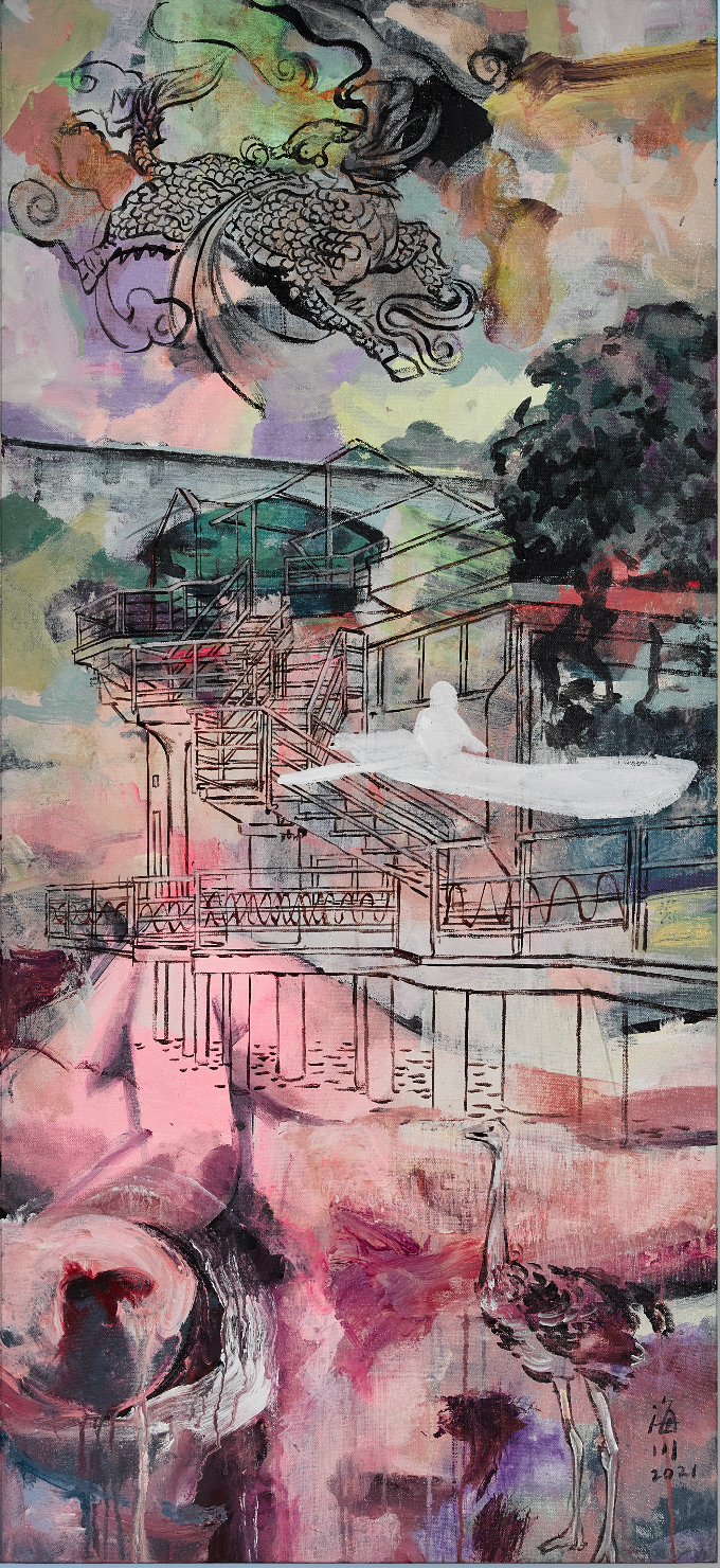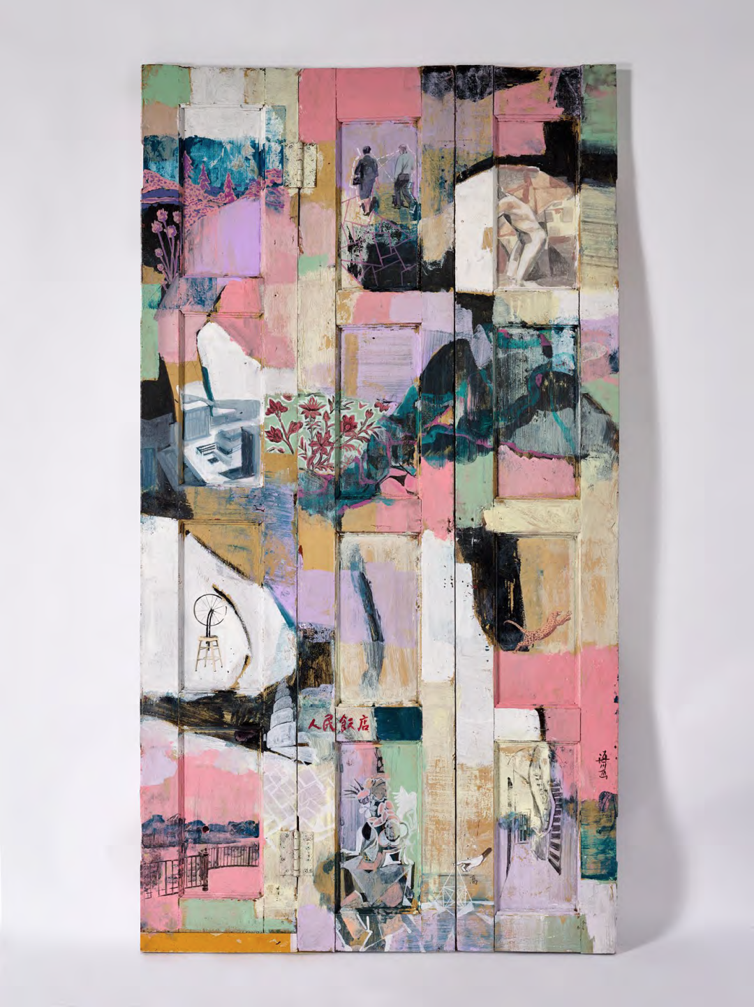 In Wang Haichuan's artistic practice, a unique language system for dismantling reality has grown, a new way of understanding the world. Applied to painting and sculpture, his method of piecing together disparate elements works so well that the pursuit of a coherent narrative leads only astray. The figures, shapes, or fragments of old furniture are all detached from their original context, reinventing themselves to extend beyond the established framework of the medium. This creative approach leads to an aesthetic game, combining figurative and abstract techniques, that inspires the viewer to actively participate in the response rather than dominate the viewer's experience. Wang Haichuan's materials include daily life, architecture and art history. He flips through the pages of history and compiles a new timeline for the current reality. In his own words: "My painting deals with a question of collective memory, that is, what can we find from our history" [Zhao Zilong interviews Wang Haichuan, May 14, 2010]. Just like collective memory itself, Wang Haichuan's works do not point to definite conclusions, but merely collect and collect scattered signs into a whole.
