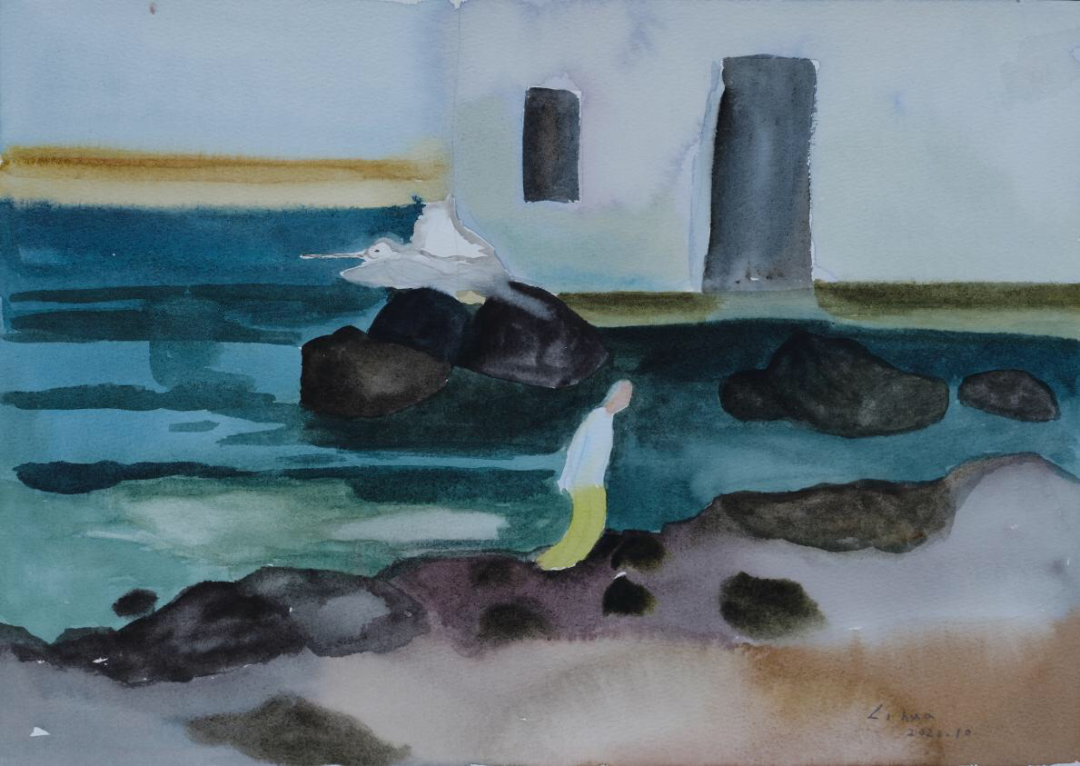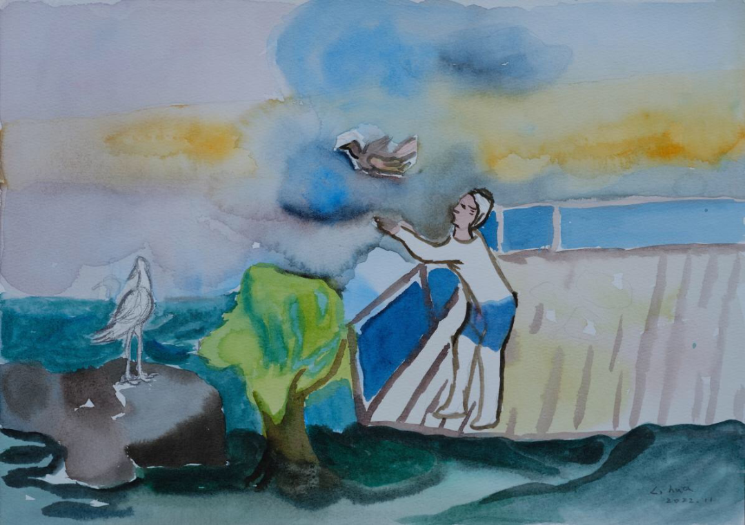 白鹭与塑料鸟  28x38cm 纸本水彩 2022