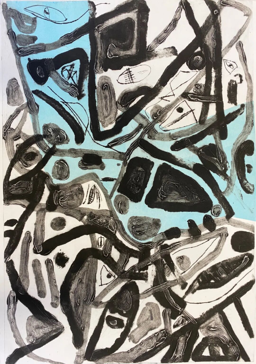 综合版画——金刚砂、丙烯、干刻技法在醋酸纤维纸上