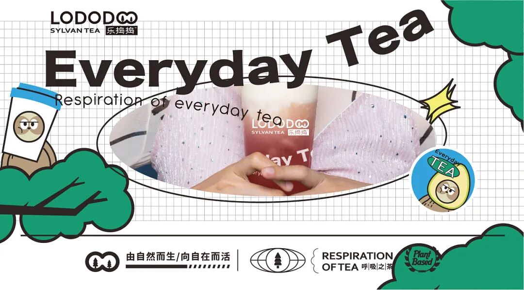 乐捣捣·奶茶森物所,品牌希望传递乐于捣鼓的年轻态度,打造一个会呼吸的“富氧空间”。视觉呈现上,找到了植物的超级好朋友--树懒,通过超级IP+自然调性的视觉锤提炼、自然活力的色系运用、年轻时尚的设计感呈现,打造“由自然而生、向自在而活”的新式茶饮品牌。