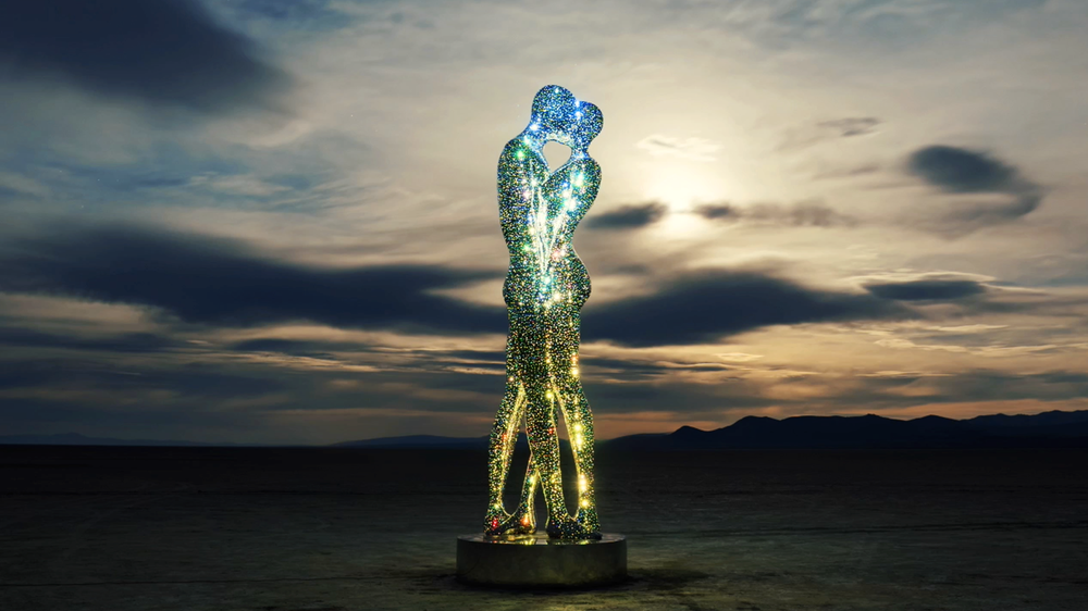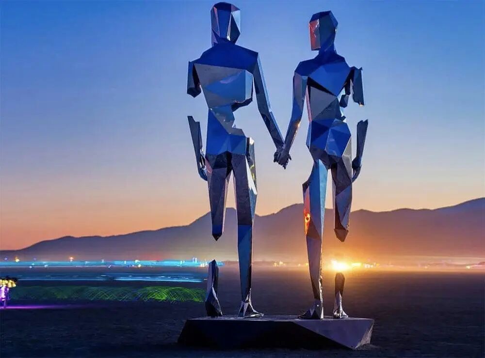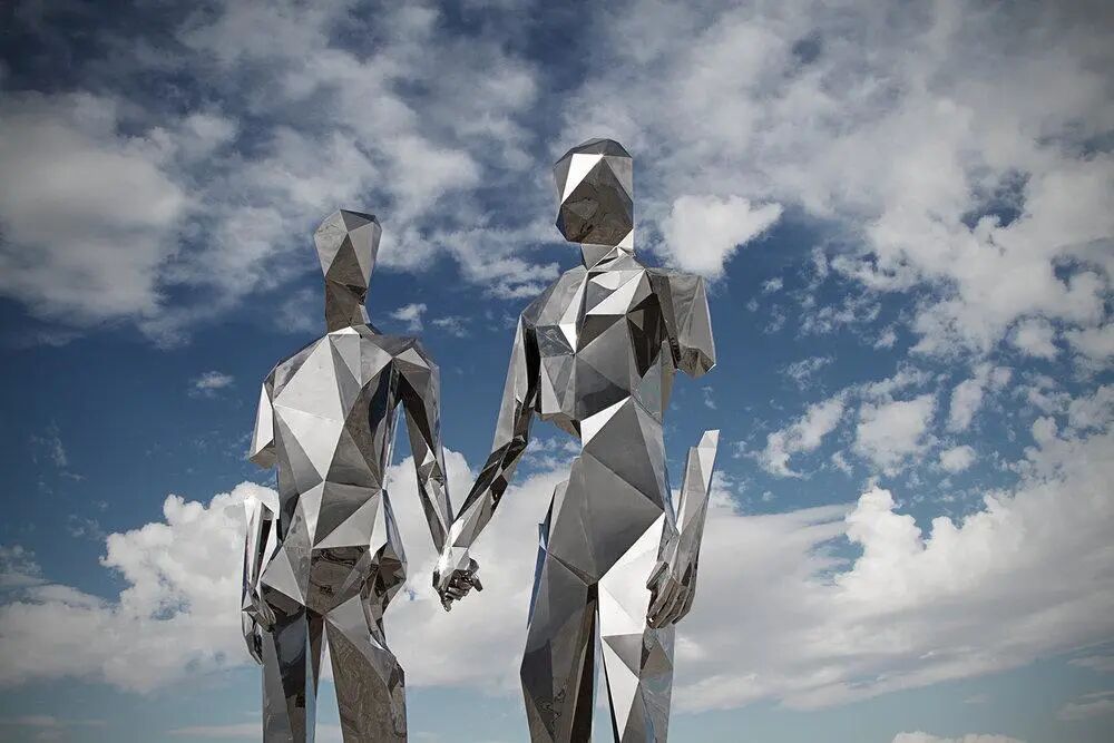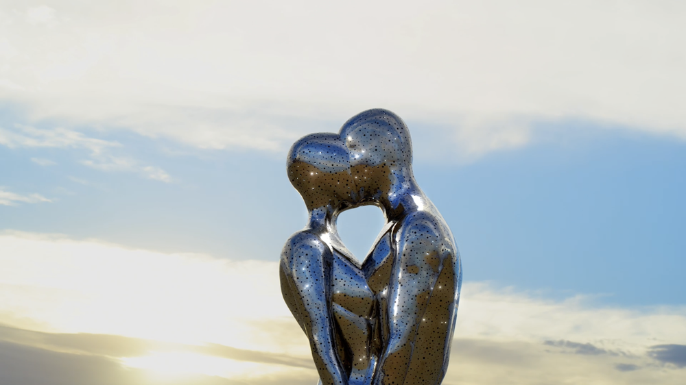 从那时起,迈克尔·贝尼斯蒂开始探索金属雕塑装置艺术,这位艺术家总会在创作中,融入更多的元素,比如他深受人物形象的启发,会经常让人形雕塑摆出拥抱或牵手的姿势,甚至连恋人相拥保留的间隙,都是一颗爱心的形状。