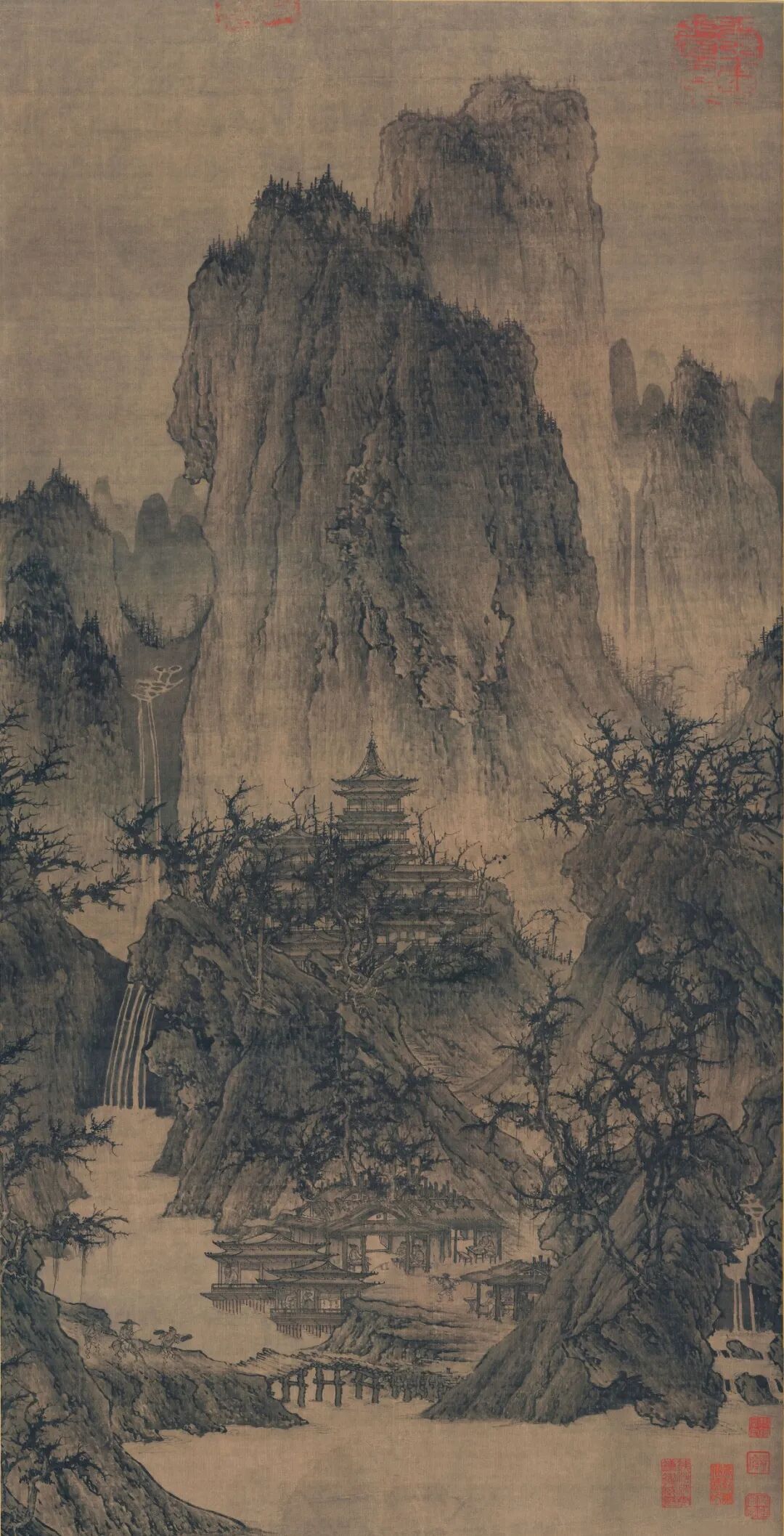 图1:《晴峦萧寺图》北宋 李成。日本镰仓时期以水墨为美的日本禅画师普遍认为,北宋山水过于宏大以至于无法摹仿。