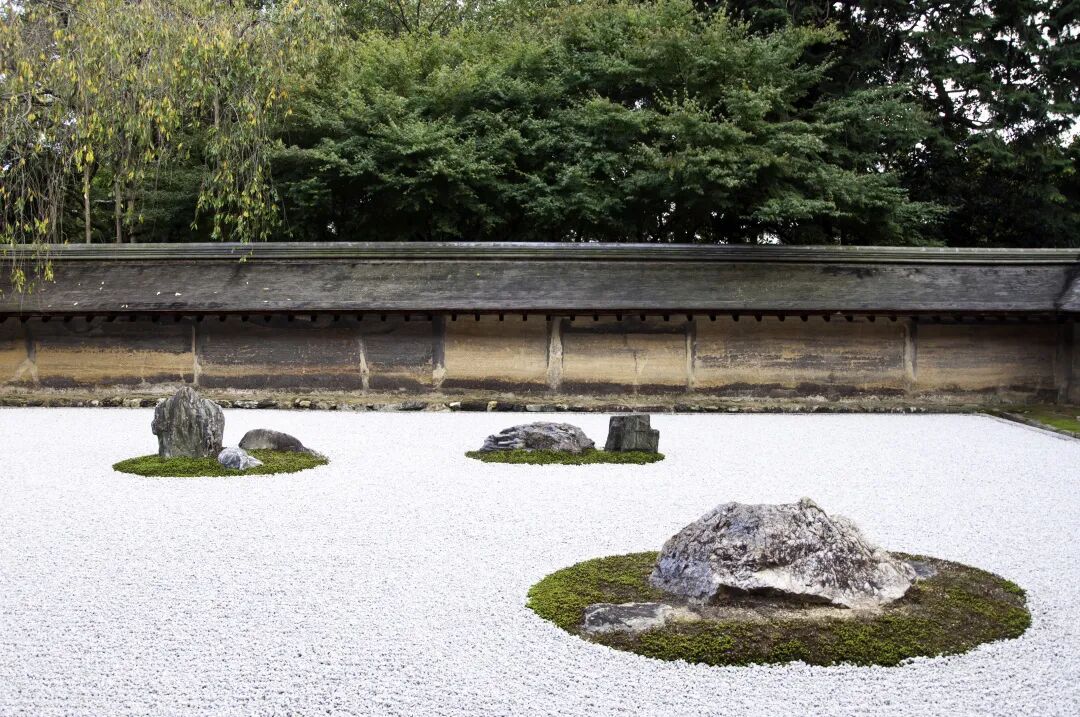 15世纪建于京都龙安寺的枯山水庭园,是日本庭园侘寂美学的代表之一。©deposit photos