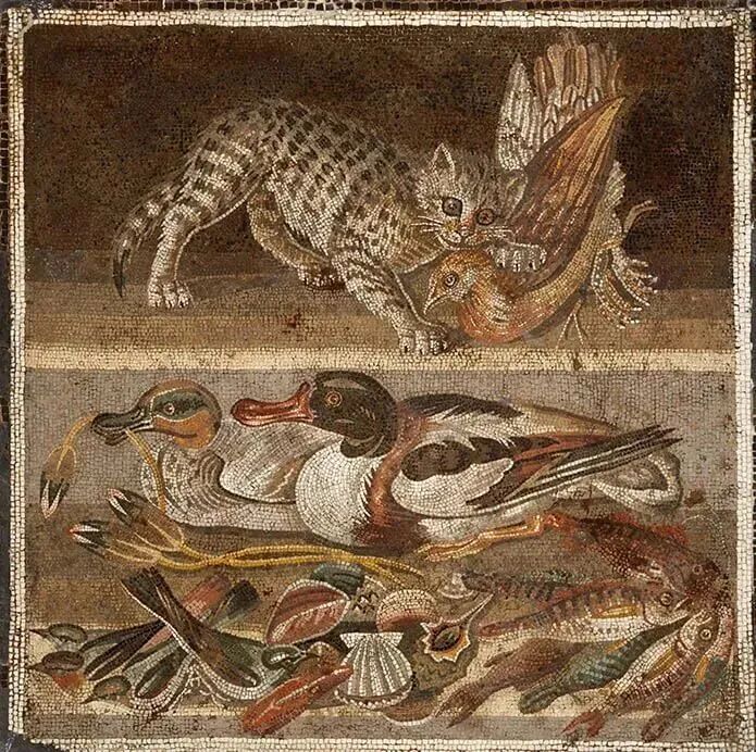 庞贝古城中的地面马赛克镶嵌画,现藏于那不勒斯国家考古博物馆
