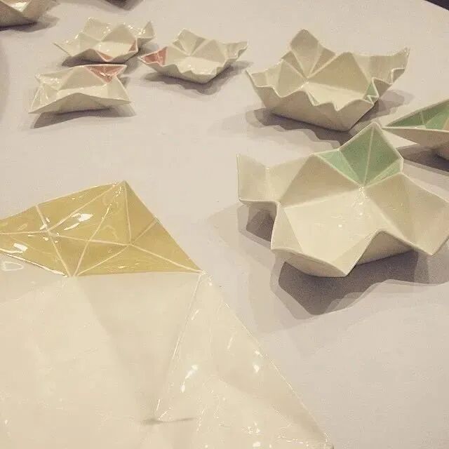 其实,除了忆童年系列,这位陶瓷艺术家还根据折纸的灵感,创作了令人惊叹的餐具和盘子,她模仿折纸的折痕,让我们生活中最不可或缺的盘子、玻璃杯更有时尚感和艺术感。