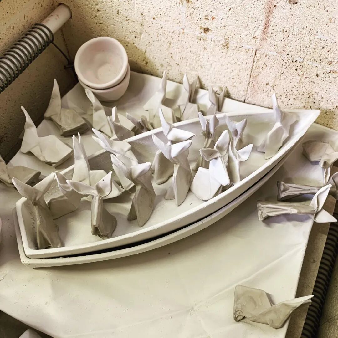 作为一名陶瓷艺术家,安吉丽娜·埃尔霍恩一直想创作一组共鸣感强的作品,苦苦构思了几年,直到从一张布满折痕的纸上,得到了灵感。在她看来,不论是纸船,纸飞机,还是千纸鹤,都是很多人儿时抹不去的记忆。