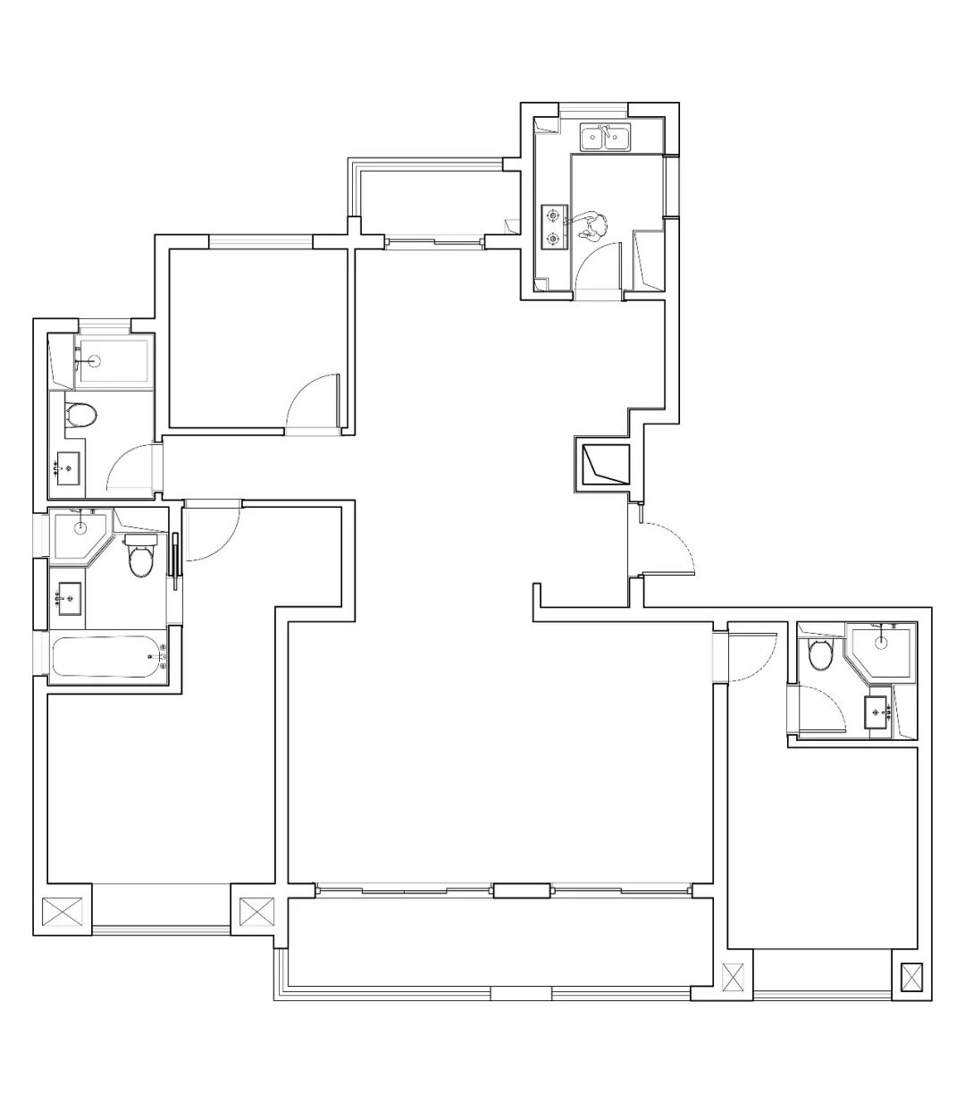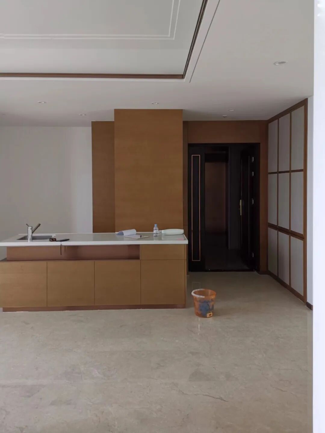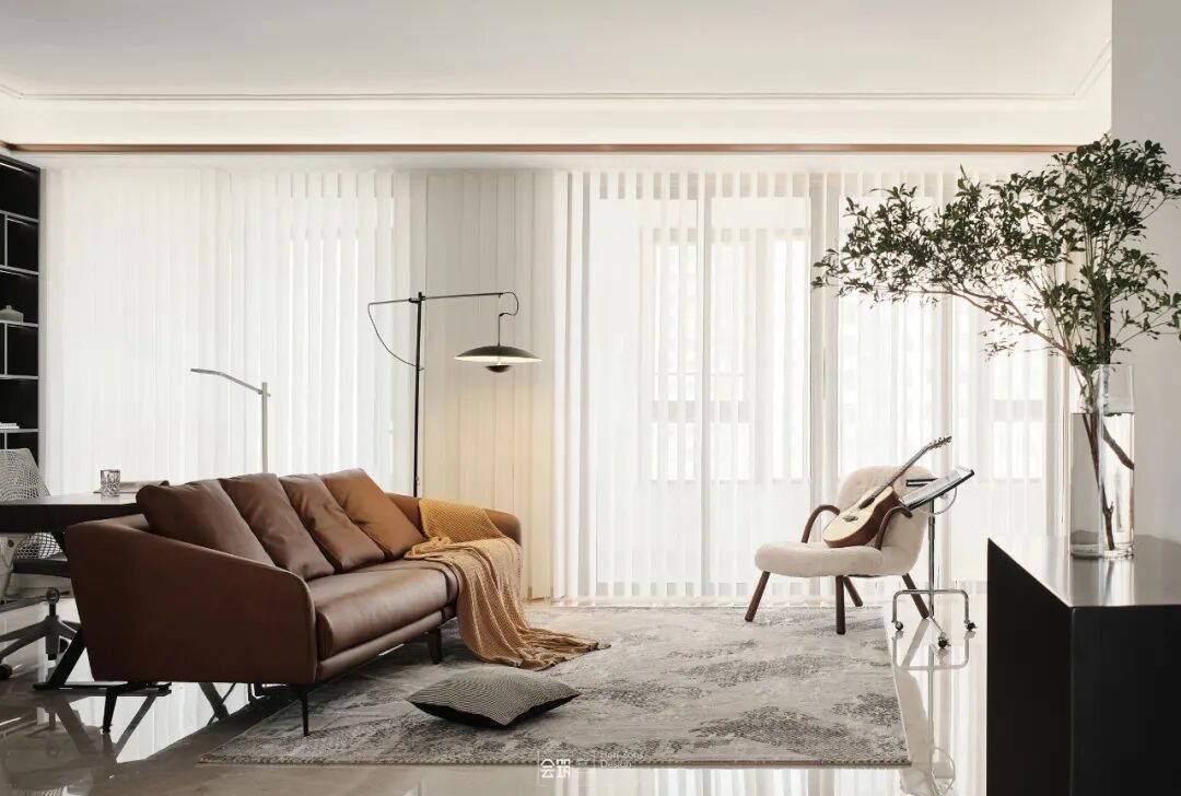 精装三恒系统交付,改造限制较大,顶面造型上未做大的调整,保留原始中间主光源,通过线性灯带和落地灯不同的环境光来满足空间的照明需要。客厅增加开放式书房,随性自由的家具布置,让家人可以以轻松自然的方式共度时光。网红梦幻帘拥有布帘的遮光性,又兼具纱帘的透光性,还融合了百叶帘的调光功能,既能保护隐私又充满通透感,将整个室内光线调动的安逸柔和。