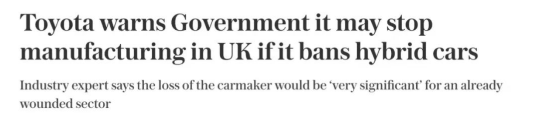 在海外市场,丰田开始对英国的政策指手画脚。据《电讯报》报道,全球汽车巨头丰田甚至警告英国政府,如果英国正式决定将禁售混动车型时间提前至2030年,丰田将调整其在英国的整体投资计划,甚至会考虑停止在英国的生产。对于脱欧之后的英国来说,丰田作为汽车巨头,其投资举足轻重,轻易不敢得罪。在丰田的大本营,丰田章男也曾经对日本政府希望提前禁售燃油车的计划大加抨击。不过和英国以及日本抵触混动技术不同,在中国市场,混动技术正日益受到国内消费者的追捧。政策制定者,也似乎透露出对混动技术网开一面的苗头。