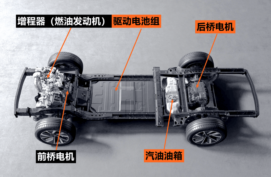 从技术上来说,本质上是串联式混动技术的增程式,无论是在馈电油耗上,还是在高速行驶的效率上,和混联技术相比都存在明显缺陷。但它最大的一个好处是结构简单,发动机只需要承担一台发电机的工作,为电机提供电源即可。机械工程设计能力更强的传统车企,自然不屑于开发馈电油耗更高、动力性较差的增程式技术。