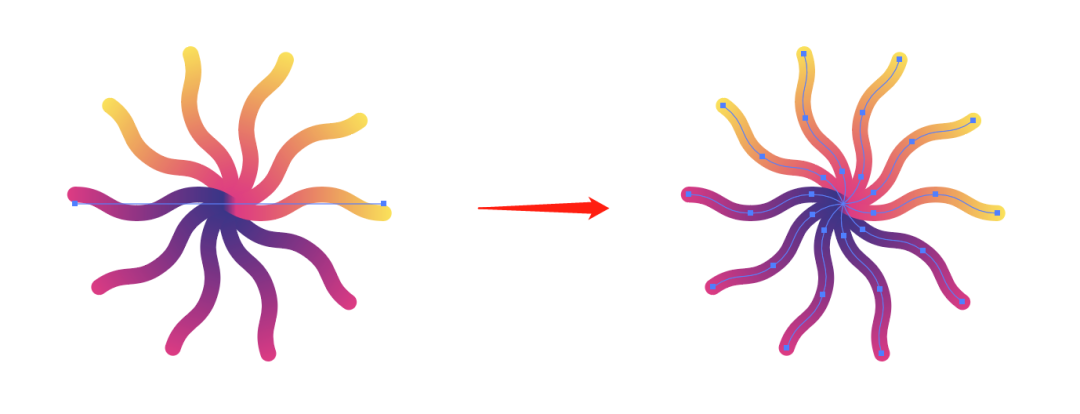 我们也可以通过对象-混合-反向堆叠命令,来颠倒前后关系,呈现出另一种效果,如下: