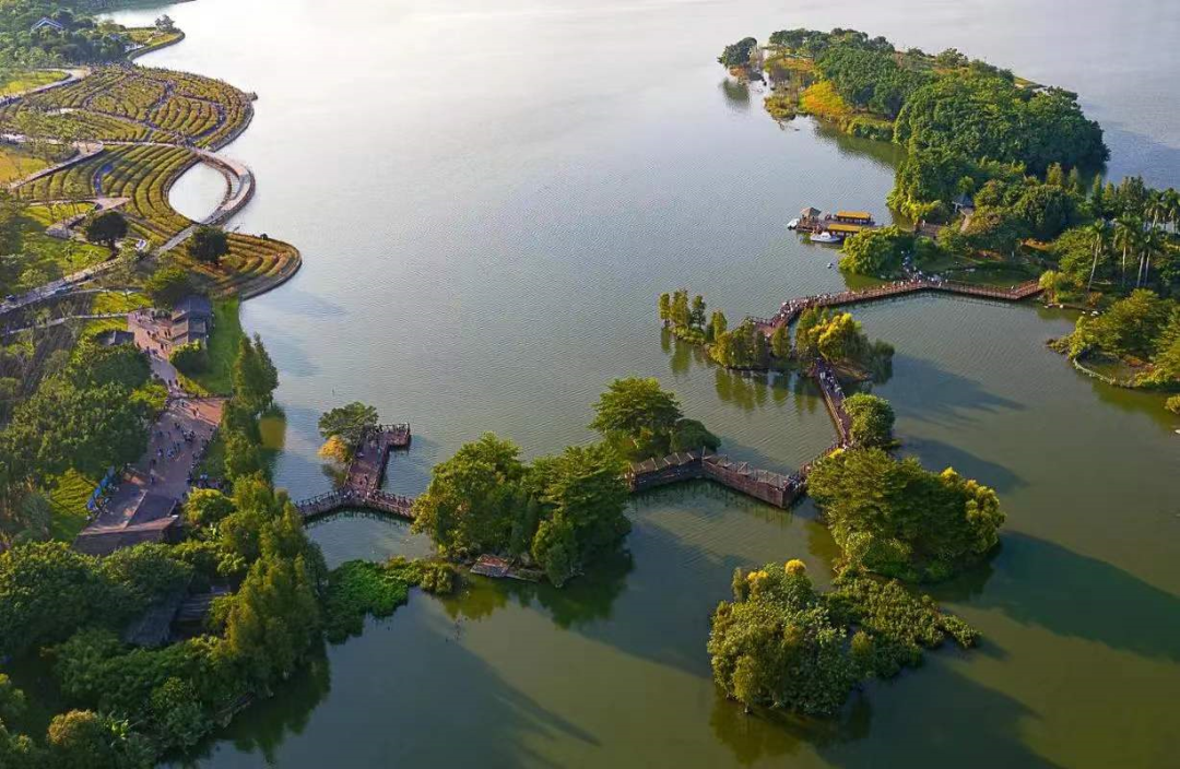 海珠湖公园是广州知名的文旅地标和城市名片,平日里就吸引不少游客前来游玩。公园位于广州市海珠区城市新中轴的南段,和珠江新城CBD是在同一条线上,它由内湖和外湖组成的,在海珠湖的南岸,天气好的时候可以清晰地看到广州塔、西塔以及东塔,形成“一湖三塔”的胜景。