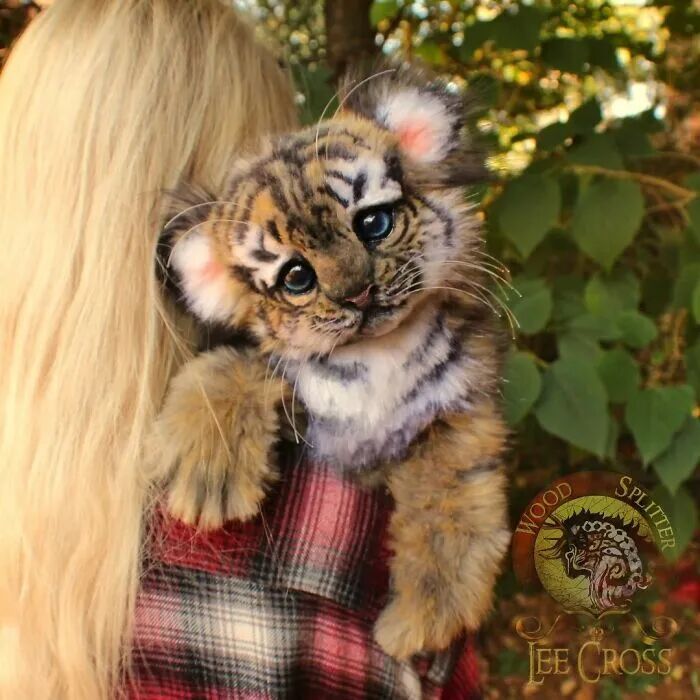 萌即是正义,可爱的小老虎谁能不爱呢?来自阿拉斯加的李克罗斯,就是一位动手能力极强的艺术家,她的作品完全可以以假乱真,用木块制作骨架,用合成皮毛制作毛发,最后再添加颜色,一只可爱的小老虎就诞生了。