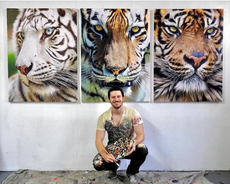尼克·西德是一位非常专业的超写实大师,他的超写实作品以动物为主,其中关于老虎油画作品最为精彩。