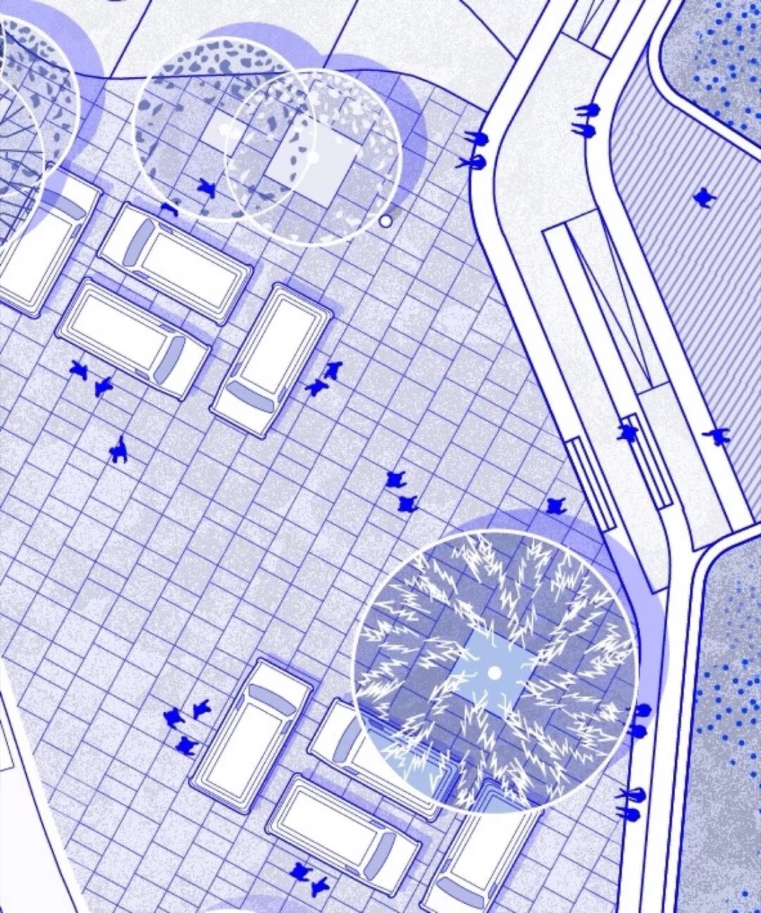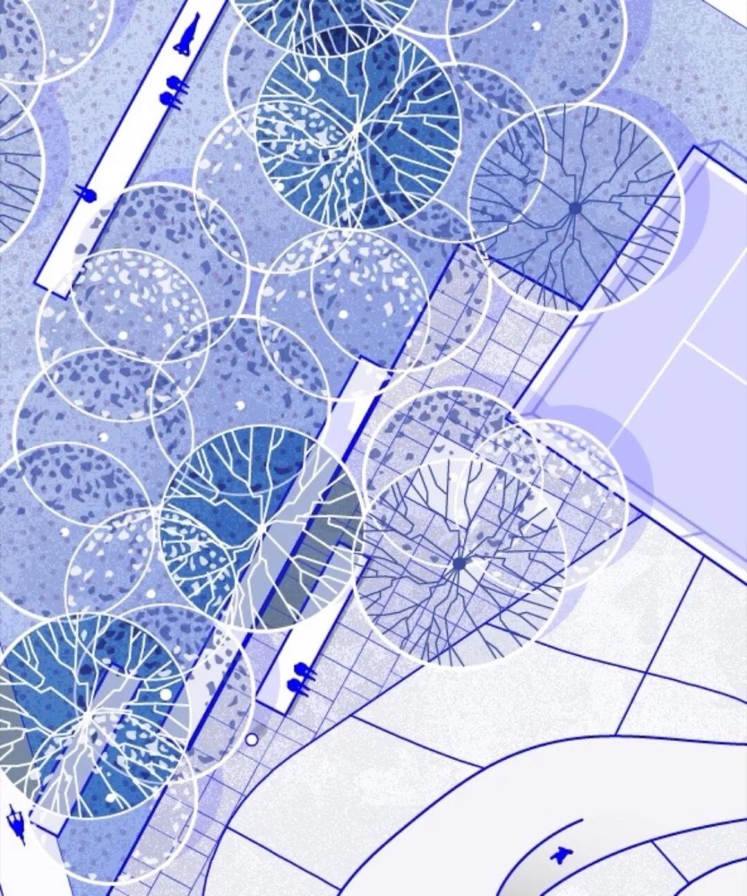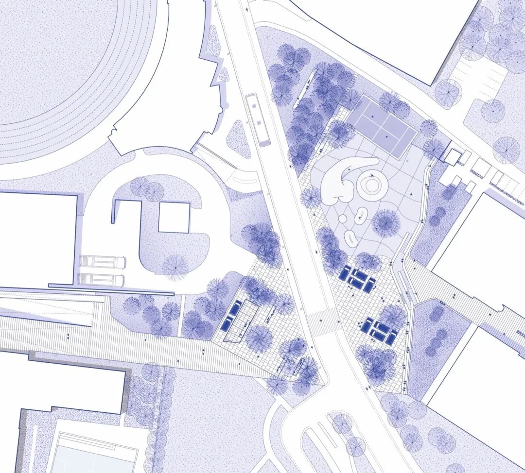 该项目最大的挑战是几乎所有周围的建筑物都背对着场地。设计师利用树木创造新的边界并定义了这个地方。这样,未来的林荫大道和广场都将是没有车辆的。设施区的入口也已搬迁,并完全融入广,这为新广场上的行人提供了充足的空间,并使其成为园区用户和当地社区的优质的聚会场所。