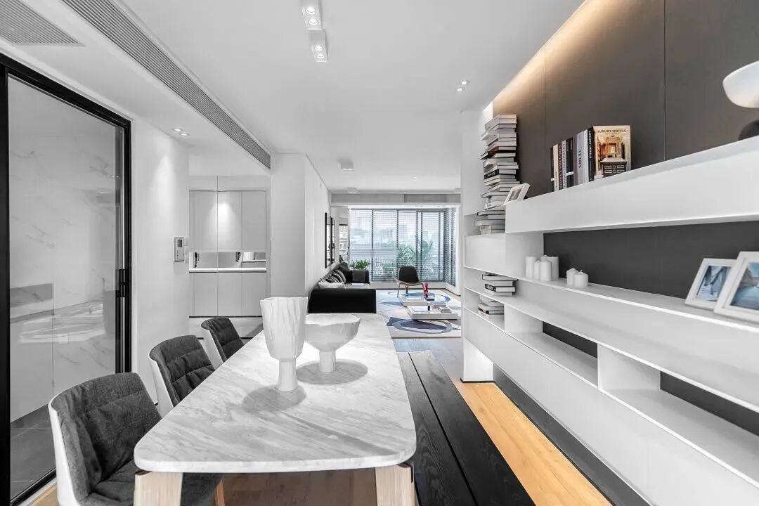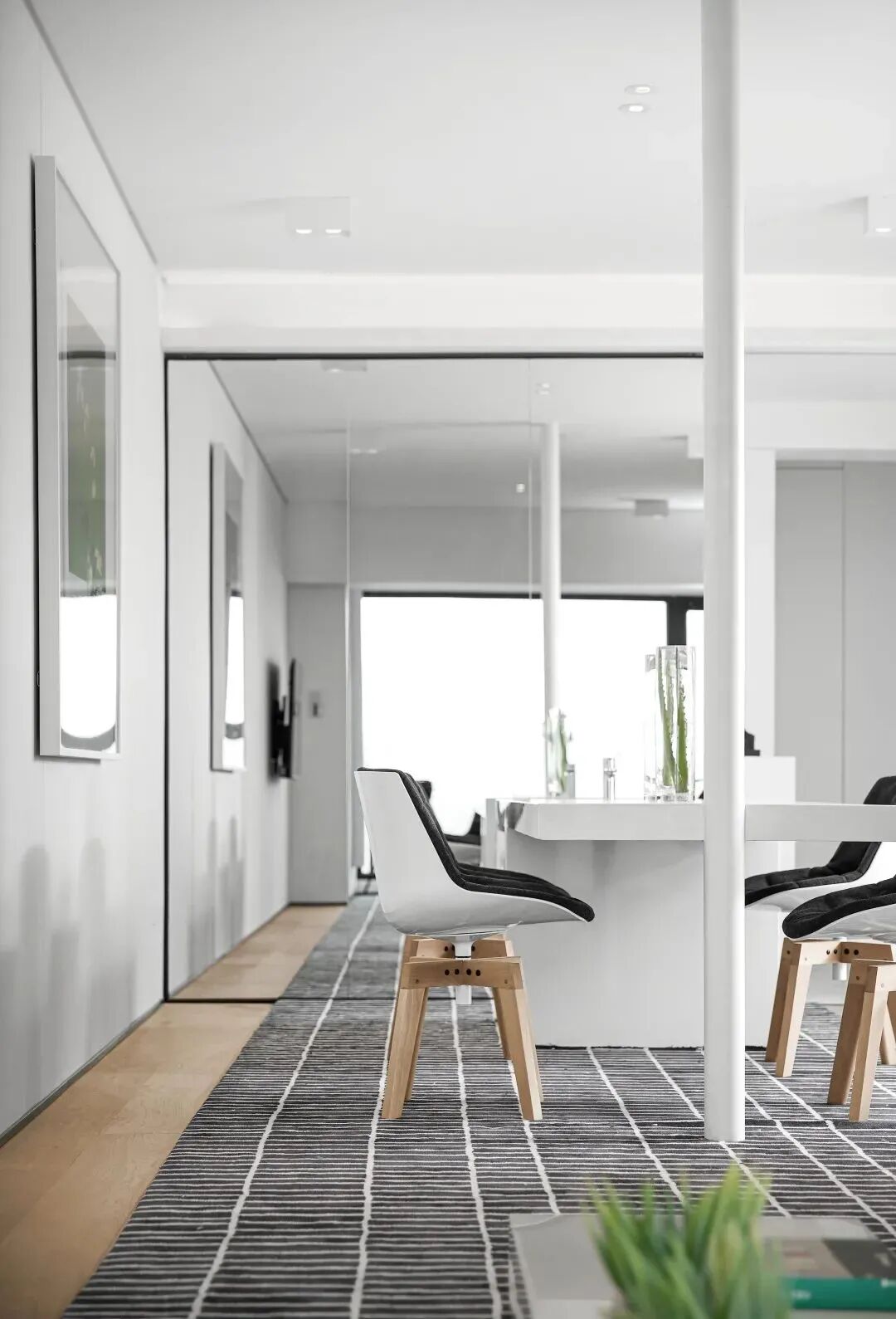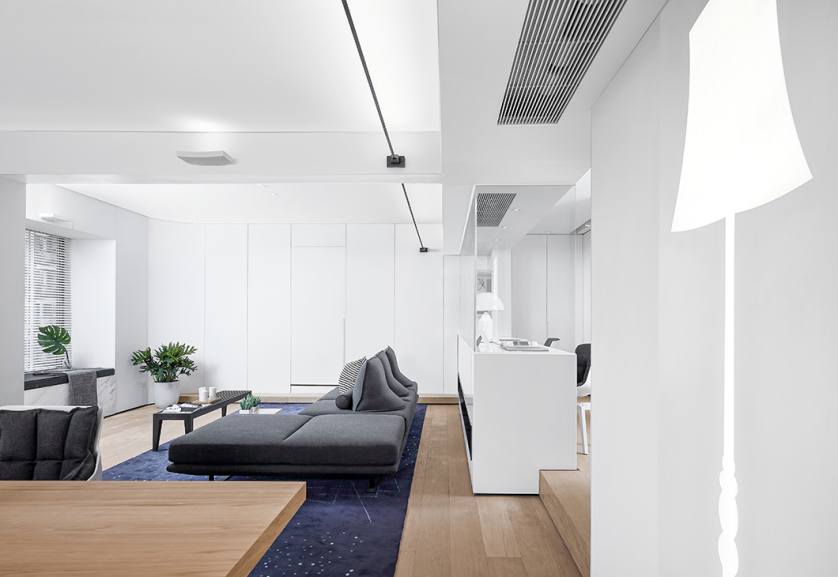 让材料退步,让造型退步,让颜色退步,纯粹极简的空间里才会让互动更近一步,让关系更近一步,让爱更近一步。如同美术馆中常常设置许多公共区域让观众在密集欣赏作品后可以喘息、停歇和交流一般,家也一样,只有弱化表面的装饰,注重场所交流功能,才能一直保持舒服的空间状态。