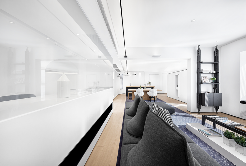 除了求学汲取养分外,大量阅读密斯·凡德罗等大师的建筑作品让他受益匪浅。极简风格主义影响了他,也重塑了他,尽管对先哲抱有强烈的喜爱,李友友仍然开辟出属于自己的一条风格化道路:在极简主义和开放空间理论的基础上,集古今文化之渊薮,以平衡空间的「开放」与「私密」为起源,精准拿捏空间边界遮蔽与通透尺度二者关系,开创性提出「空间的开放与自由、空间流动性、全面空间+亲子互动」三大设计理论。