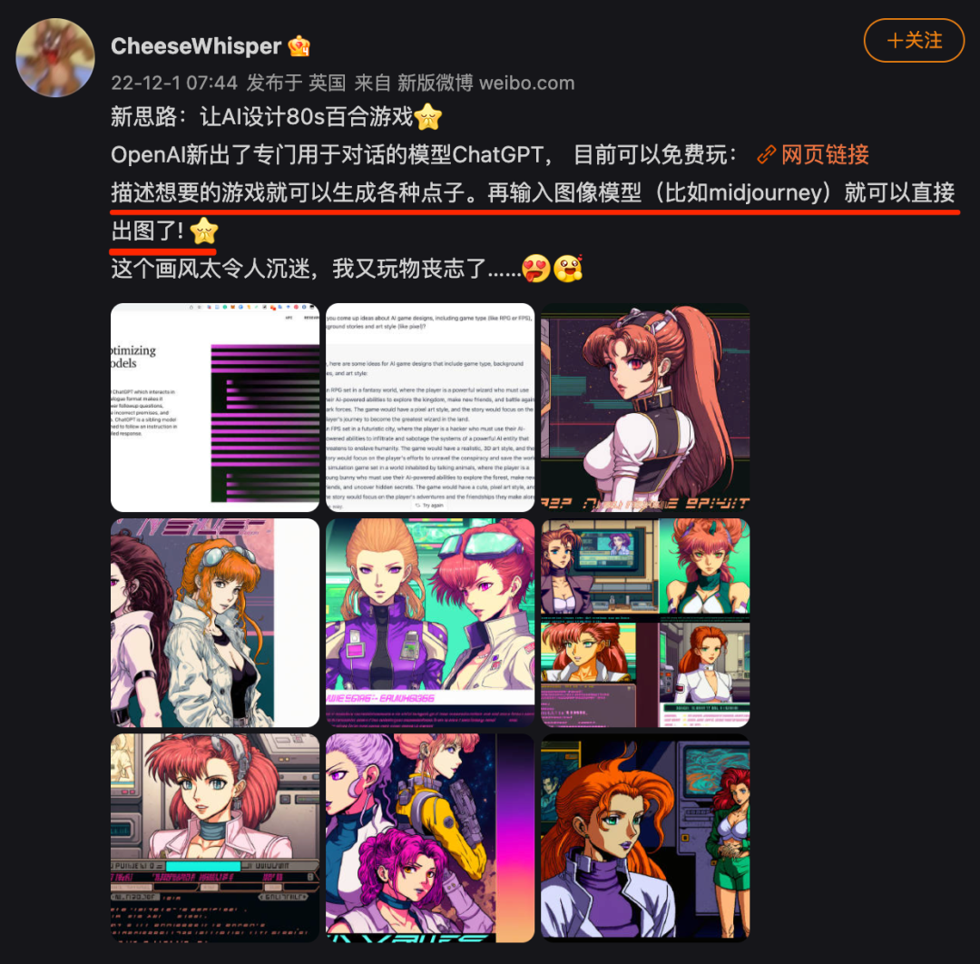有设计师用ChatGPT给出的关键词和AI绘图工具输出了各式各样的插画。